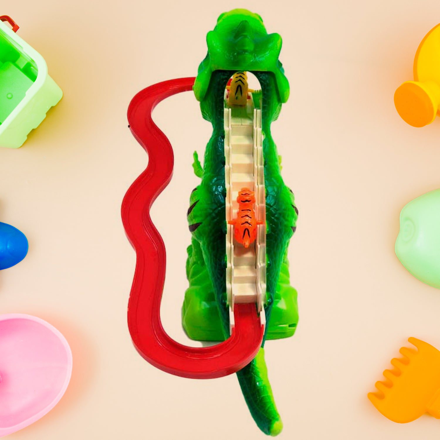 - This fun stair climbing toy set features blinking LED lights and upbeat music (with an on/off button) that your child will love. After turning on the switch, the dinosaur will climb the stairs with the music, and then slide, adding more fun.