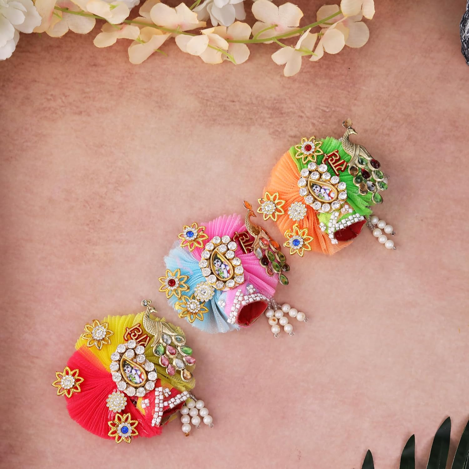 Click Pujan Kanha Pagdi – 3 No Fancy Krishna Turban with Stone & Bead Work for Janmashtami & Pooja