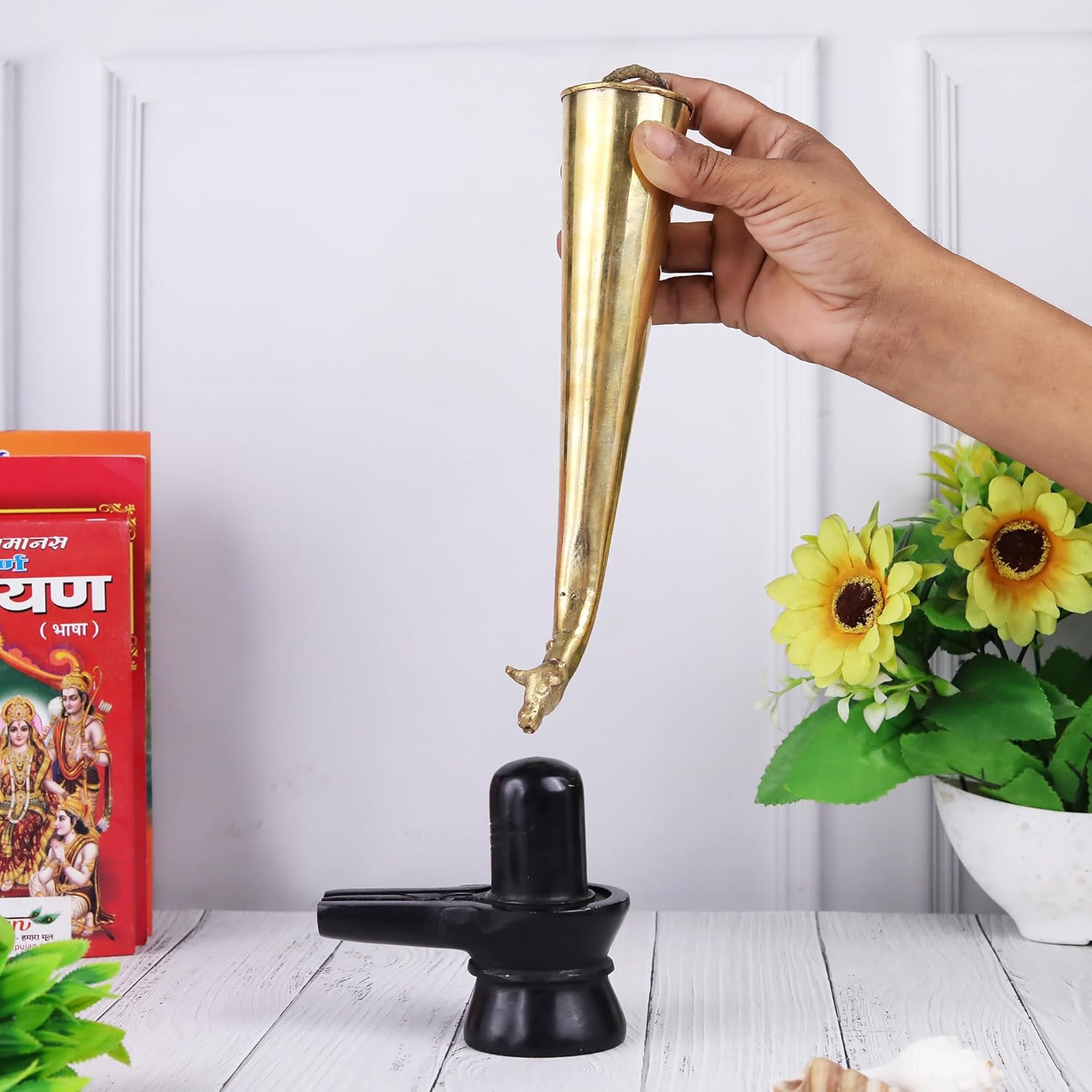 This Gaumukhi Shringi is specially designed for performing Abhishek rituals, where sacred offerings like water, milk, honey, or Panchamrit are poured over deities, particularly Shivling, during Rudra Abhishek, Havan, and daily pooja ceremonies. 🪔🙏 The smooth, curved spout ensures a controlled flow of liquids, enhancing the spiritual experience while maintaining ritual precision.