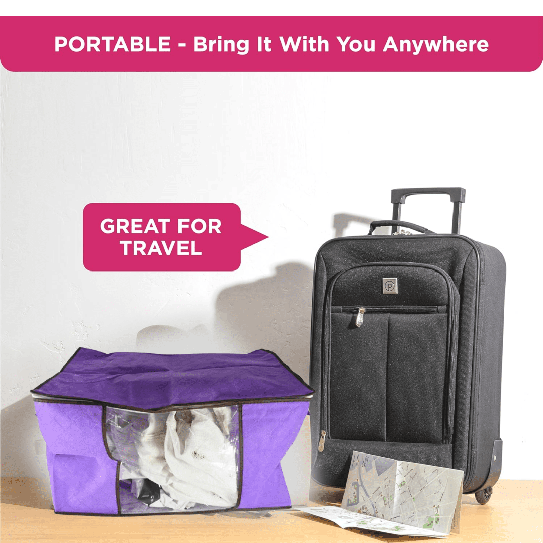 These bags are versatile and designed to store a range of clothing items, including sarees, suits, and dresses. Keep your wardrobe well-organized with these all-in-one storage solutions. - Transparent Mesh Windows:-