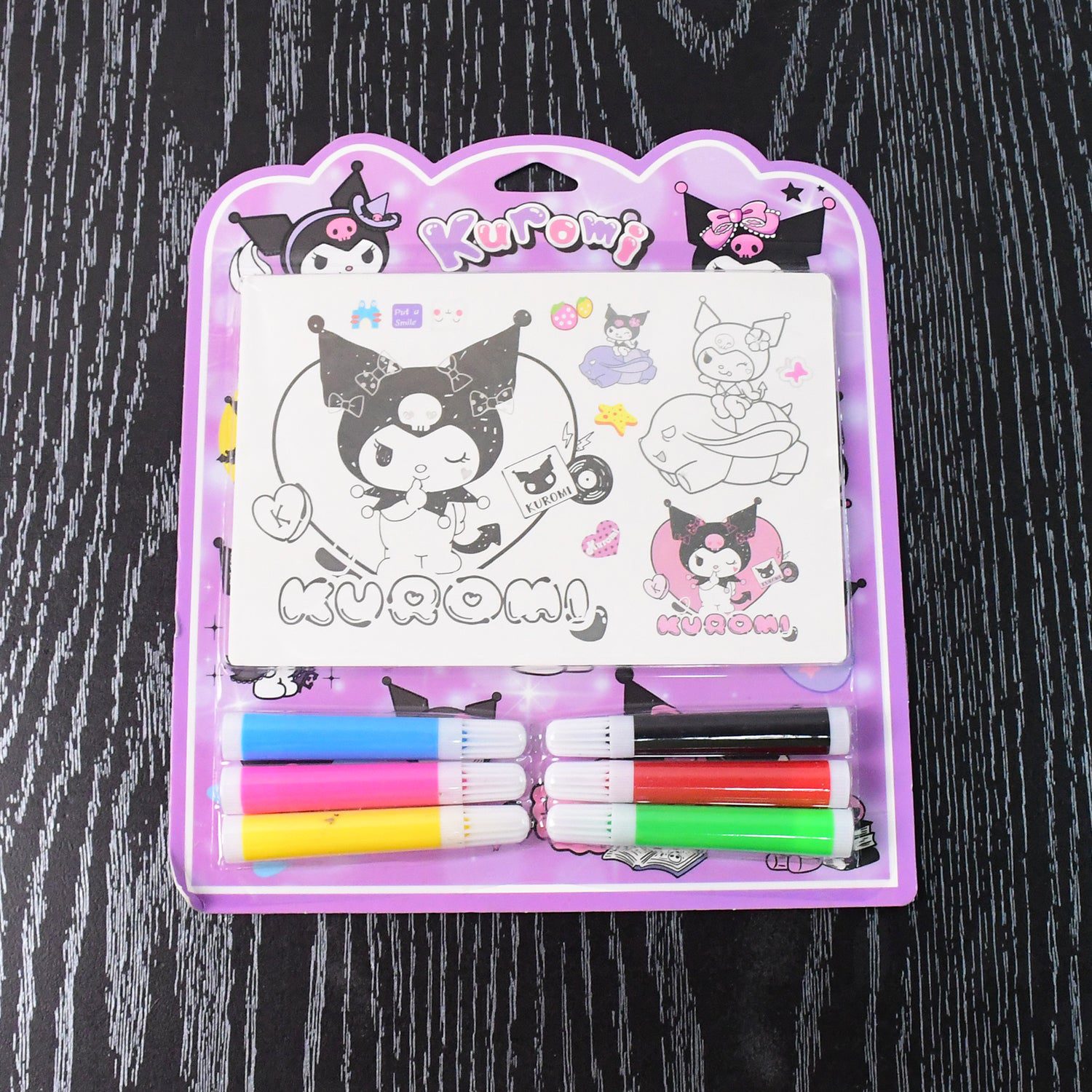 Encourage creativity and artistic skills in children with this fun Coloring Book Set. This set includes 6 coloring sheets featuring adorable Kuromi characters, perfect for kids who love coloring and art activities. The set comes with 6 vibrant colored markers, allowing children to explore their imagination and express their creativity. The sheets are made of durable, high-quality paper, ensuring long-lasting use for hours of fun. This coloring set is an ideal activity for home, school, or as a creative gift for young artists.