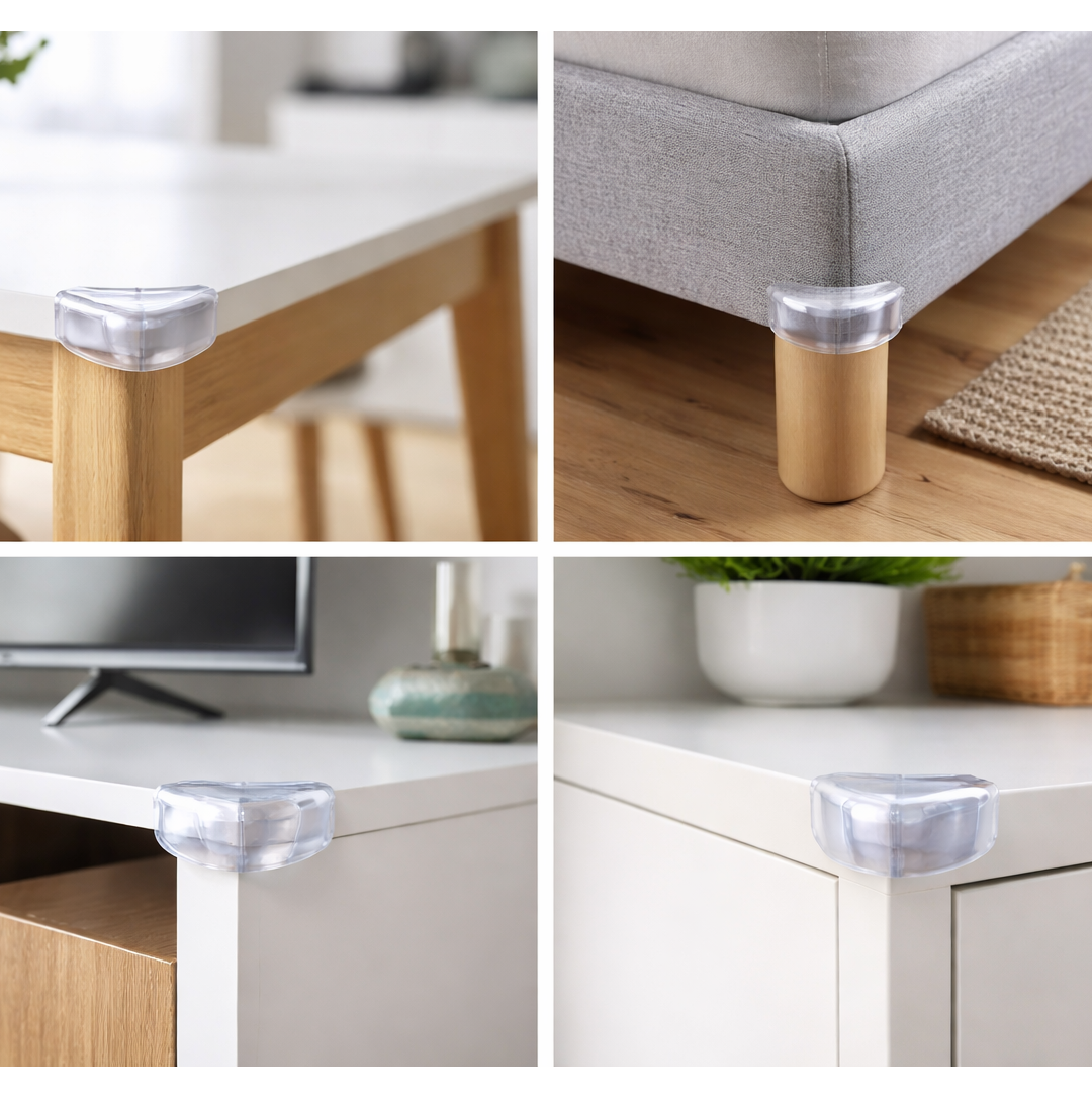 - Clear Corner Protectors comes with Pre-applied Adhesive tape, simply peel tape backing, and place at the desired corner.