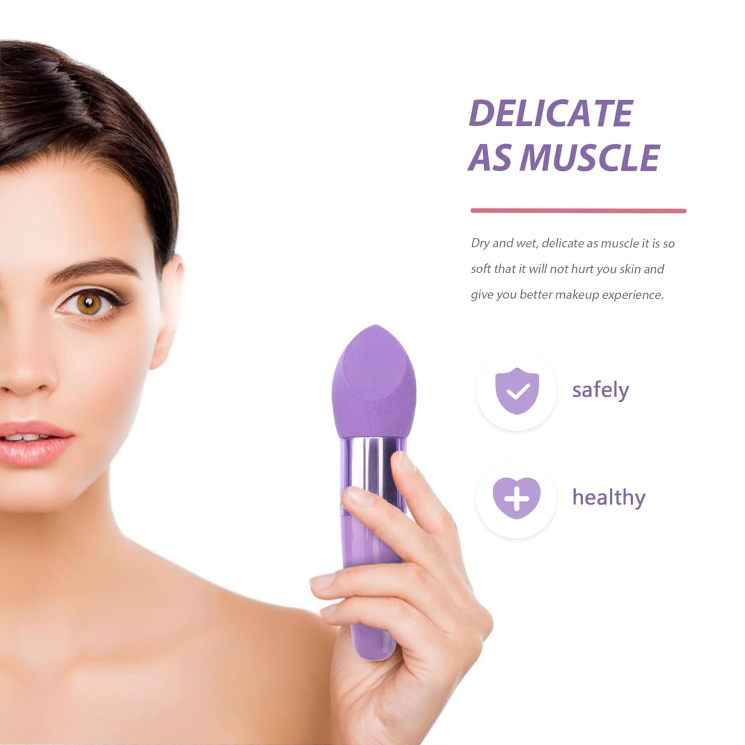 - Cosmetic sponge–the makeup sponge is designed with a handle, convenient for daily use and professional makeup, Handheld Beauty Pen.