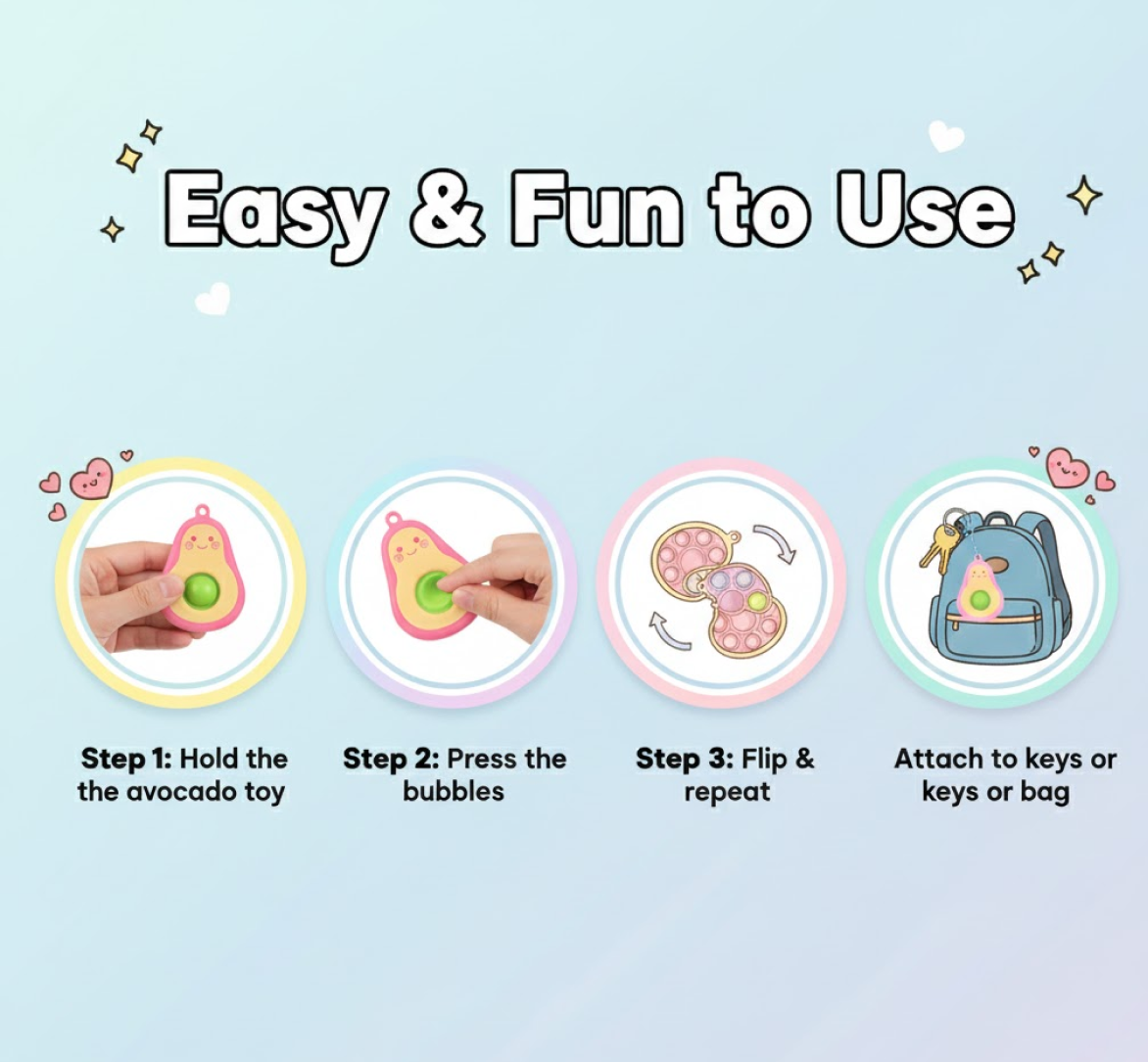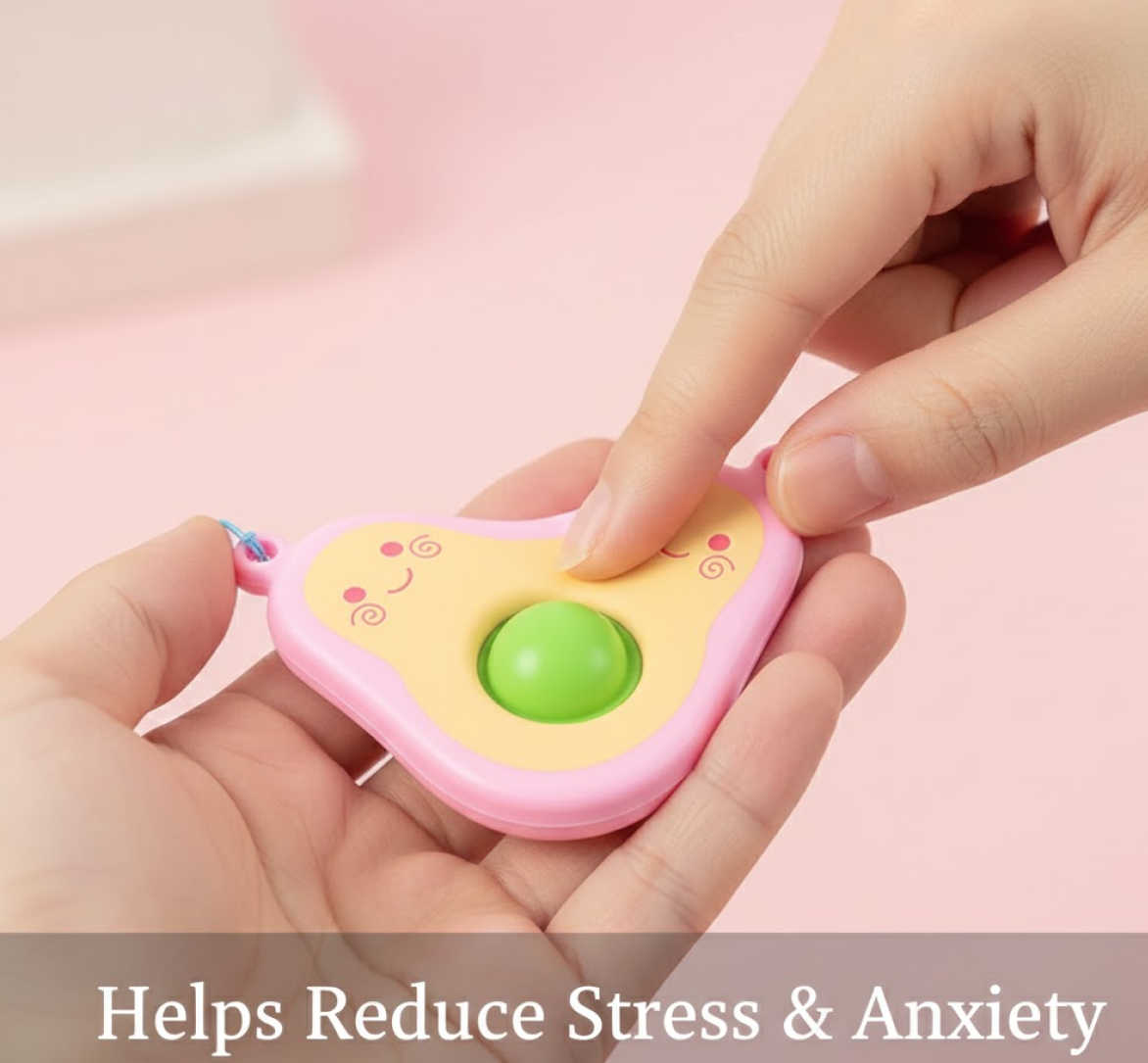 Add fun and relaxation to your daily routine with this Cute Avocado-Shaped Mini Push Pop Keychain Toy, designed as a compact and portable stress relief solution. With its adorable smiley face and bright colors, this pocket-sized fidget toy is perfect for both kids and adults looking to reduce anxiety, improve focus, or simply enjoy sensory play.