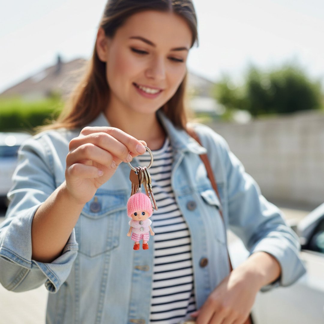 Add a touch of charm to your everyday accessories with this cute mini doll keychain featuring a soft knitted cap and stylish outfit. Designed with adorable facial details and vibrant colors, this lightweight charm instantly enhances the look of your keys, handbags or backpacks. The sturdy loop and keyring attachment ensure secure fastening, making it convenient for daily use. Its compact size makes it easy to carry without adding bulk, while the attractive design makes it suitable for gifting. Perfect as a decorative accessory, this mini doll keychain brings a playful and trendy vibe to your essentials.