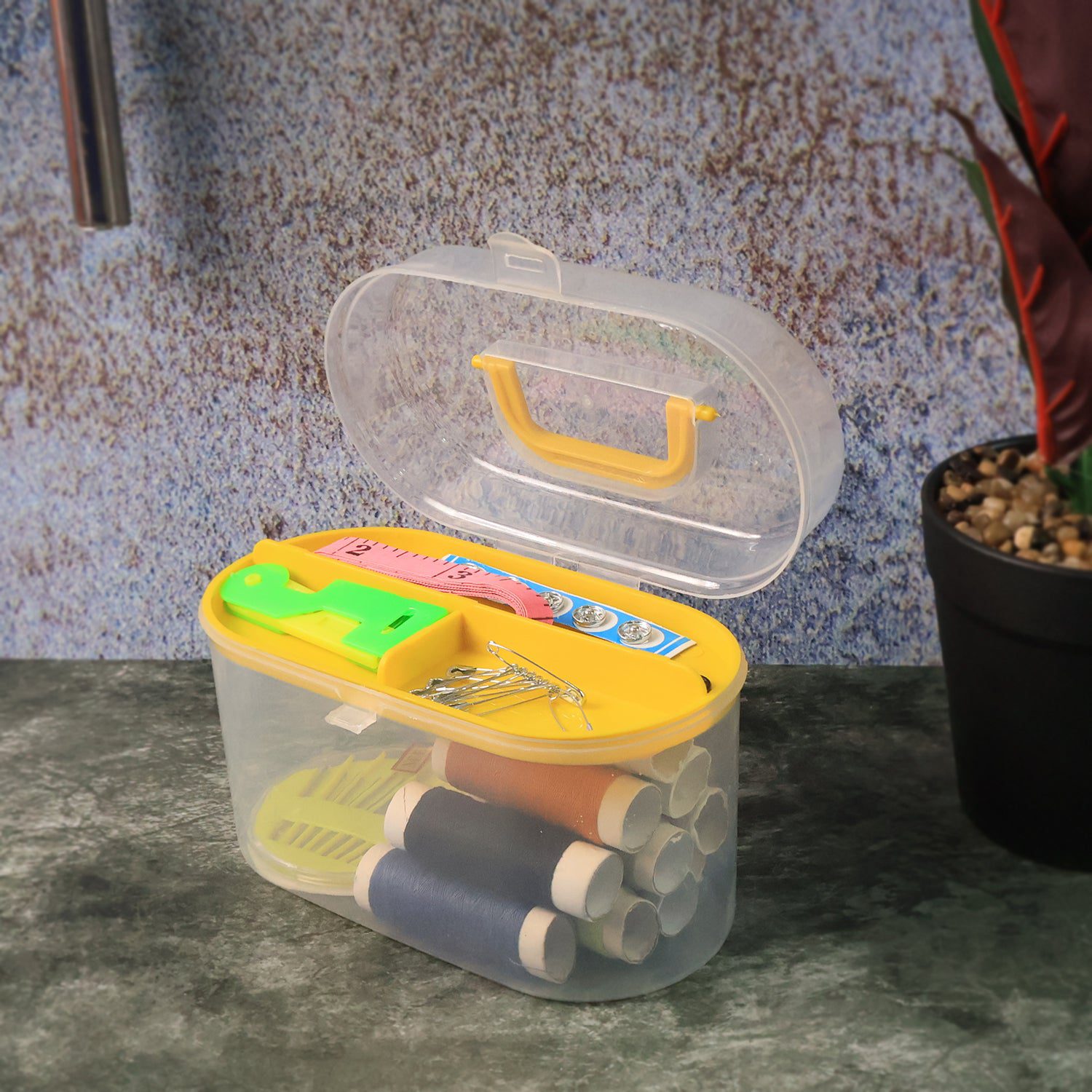 6573 Double Layer Small & Portable Travel Sewing Kits Box with Color Needle Threads Scissor pin Hand Work Sewing Box Handwork Sewing Accessories