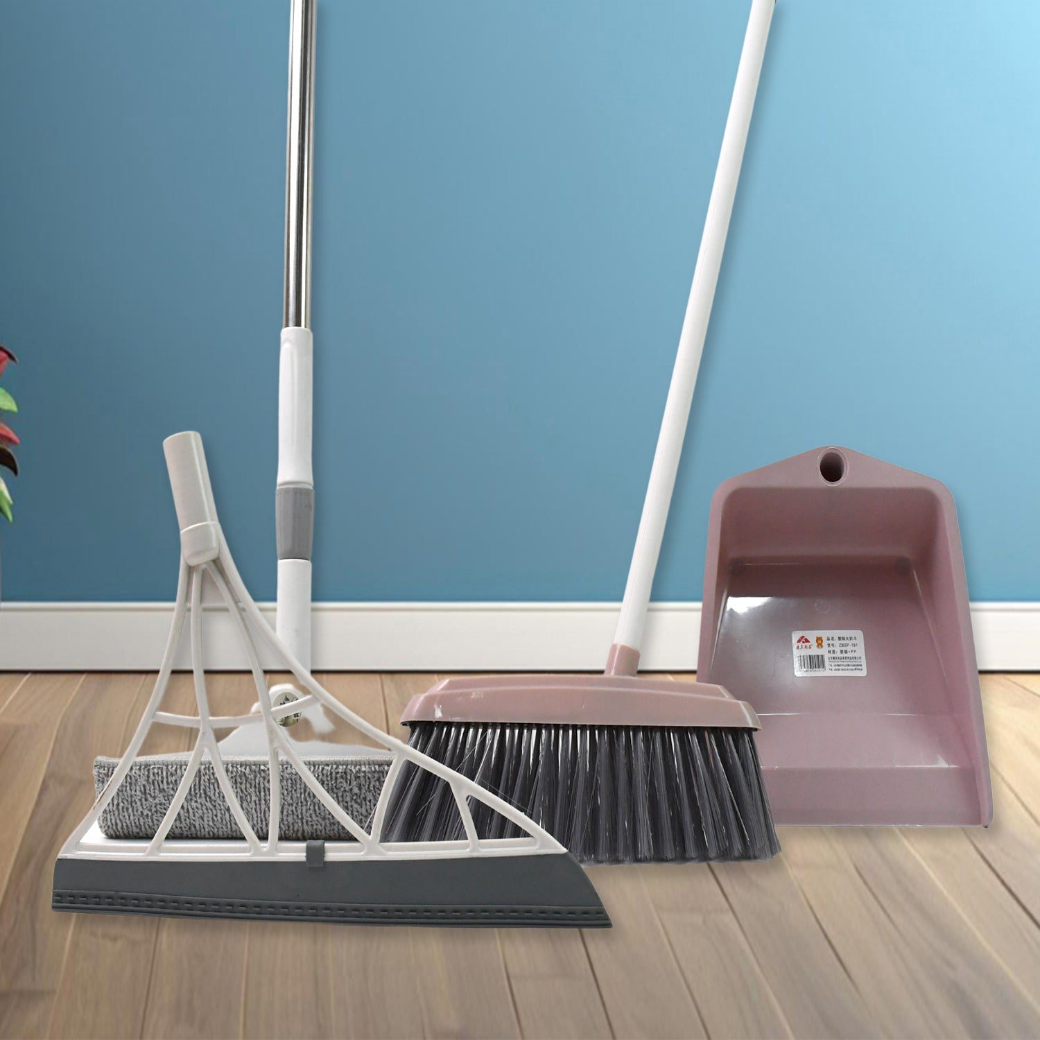 Dustpan, Kitchen Wiper, Window Cleaning Squeegee Tool & Broom Brush, (4 Pcs Combo)