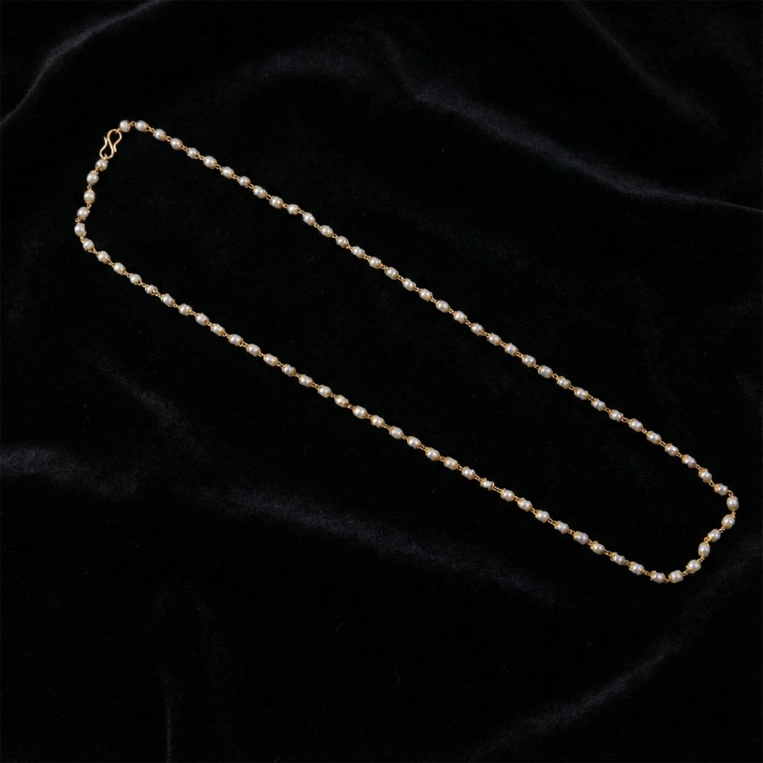 This elegant pearl beaded long necklace is designed to bring timeless sophistication to your jewellery collection. Featuring neatly arranged pearl-style beads connected with a refined gold-tone link chain, this necklace offers a graceful balance of simplicity and elegance. Its long-length design makes it perfect for wearing as a standalone statement or layering with other necklaces for a contemporary look. Suitable for both traditional and modern outfits, this imitation jewellery necklace adds a soft, classy touch to festive wear, office attire, and casual styling. Lightweight and comfortable, it is ideal for extended wear without discomfort.