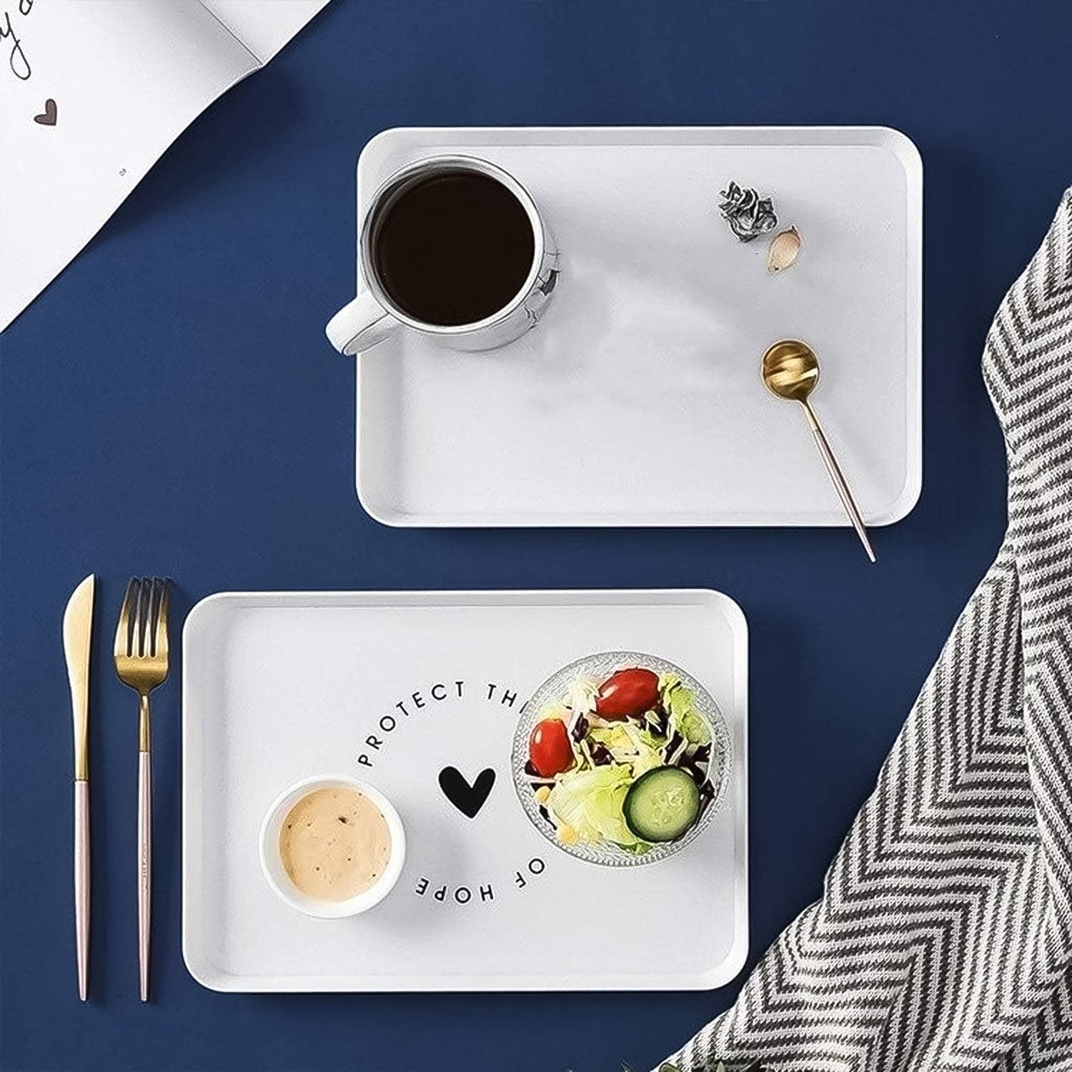 Add charm and purpose to your kitchen or dining space with this premium-quality 29×21 cm rectangular serving tray. Crafted from durable plastic, this lightweight yet sturdy tray features an inspiring quote “Protect the Source of Hope” beautifully printed with a heart motif in the center. Its clean background and bold black typography make it both a functional and visually appealing piece.