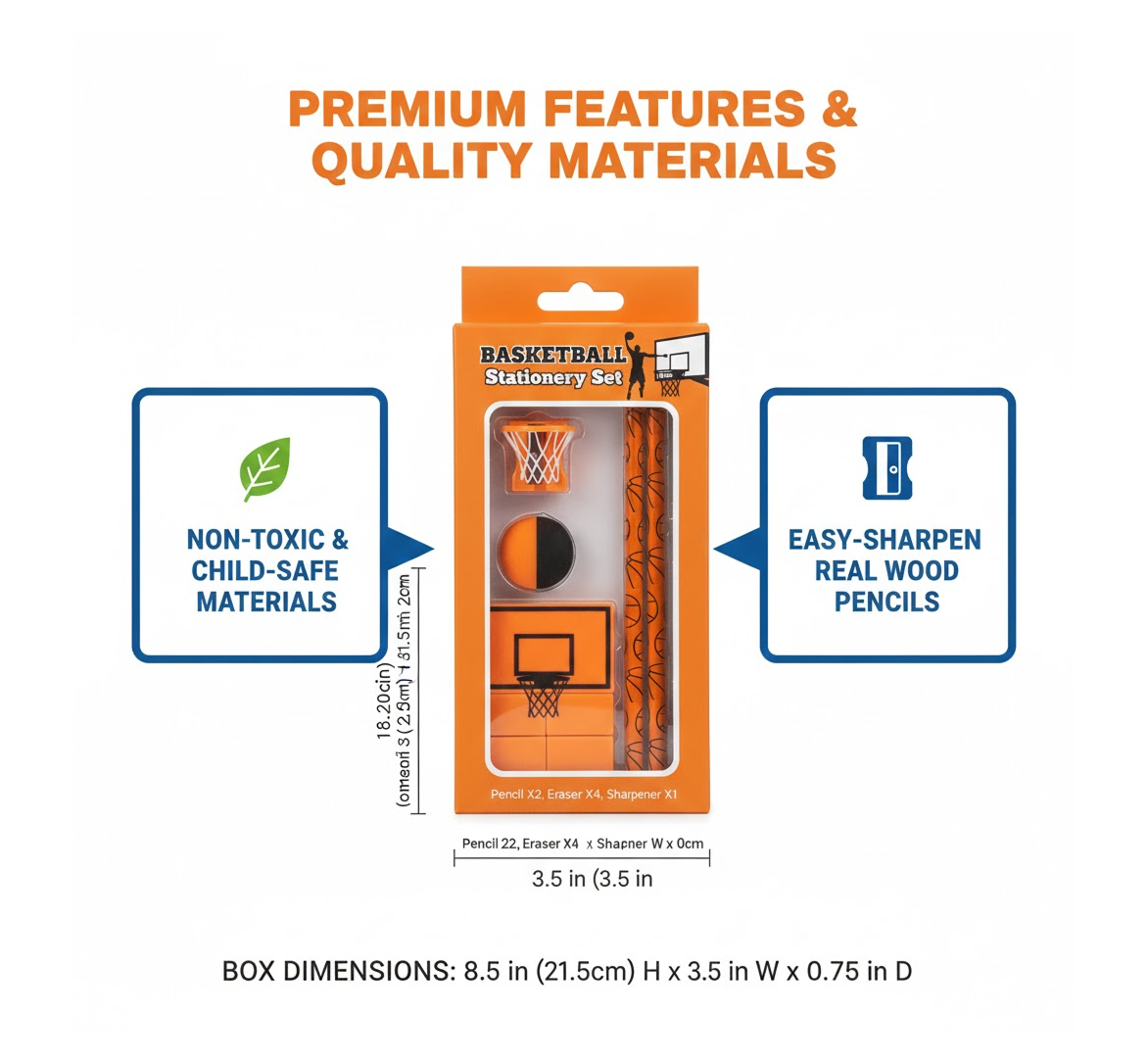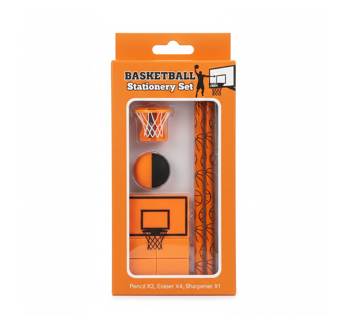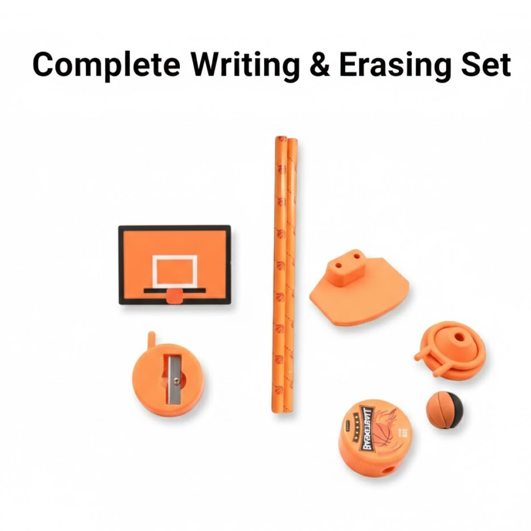 Football & Basketball Stationery Kit – Pencil, Sharpener & Eraser (Birthday Gift)