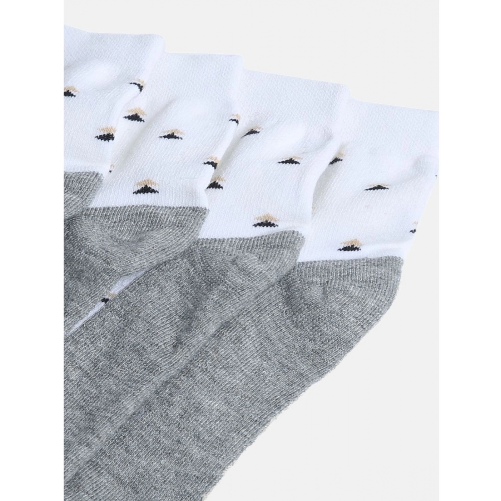 Generic 4 Pairs Men’s Casual Cotton Blended Printed Mid-Calf length Socks (White)