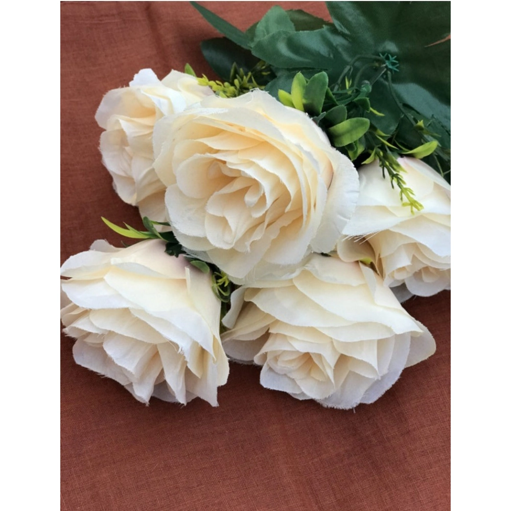 Generic Artificial Rose Flowers Bunch Bouquet Of 13 Roses For Home Decoration (Color: Cream, Material: Silk Polyester)