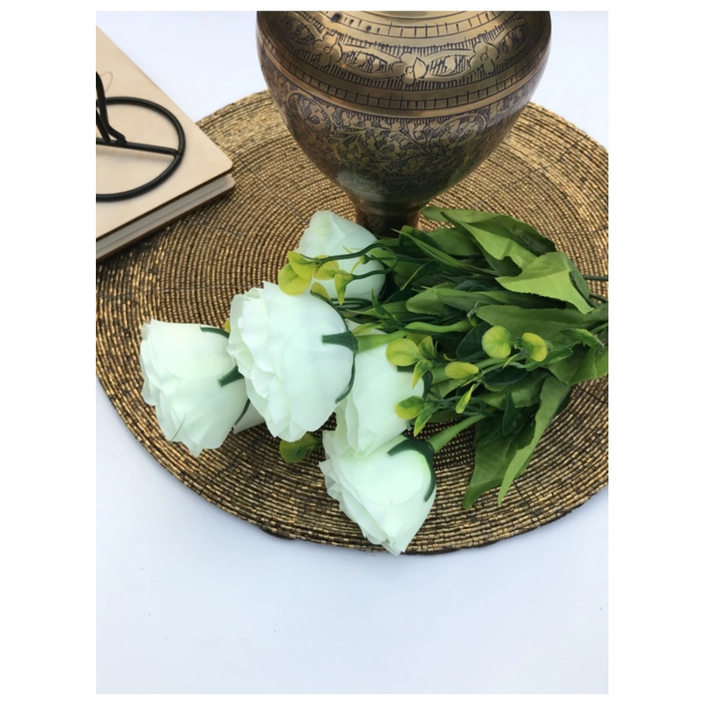 Generic Artificial Flowers Bunch Bouquet Of 6 Garden Roses For Home Decoration (Color: White, Material: Silk Polyester)