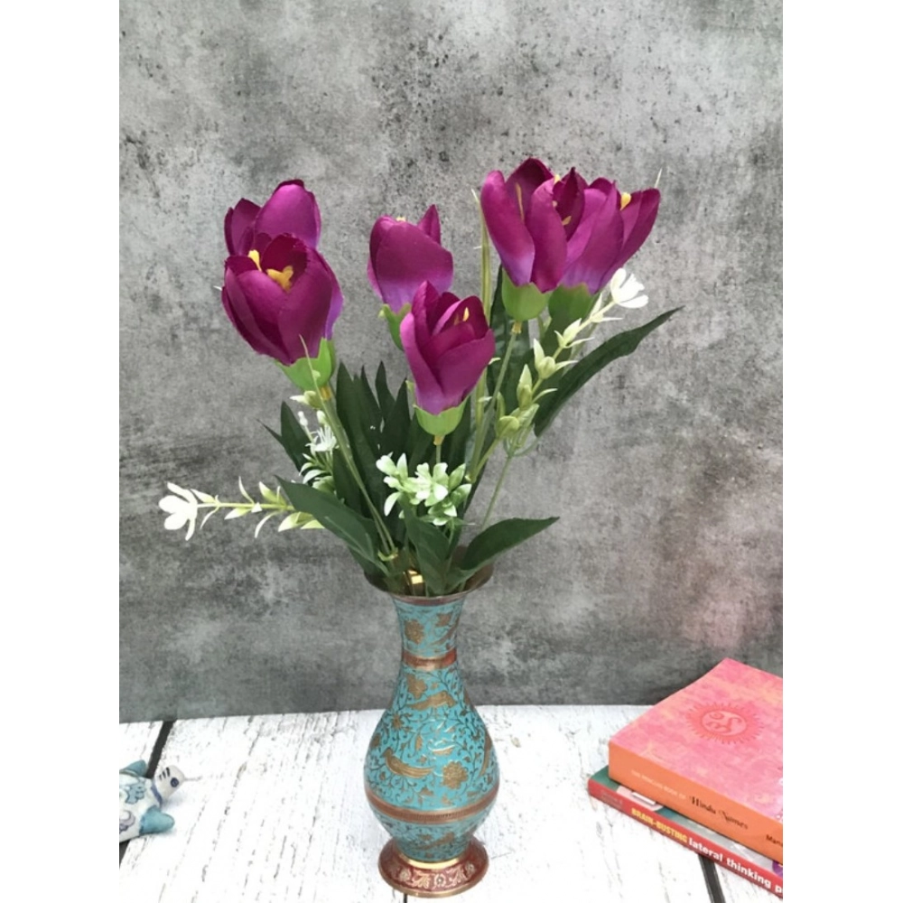 Generic Artificial Flowers Bunch Bouquet Of Daffodil Tulip Flowers For Home Decoration (Purple, Material:Silk, Polyester)
