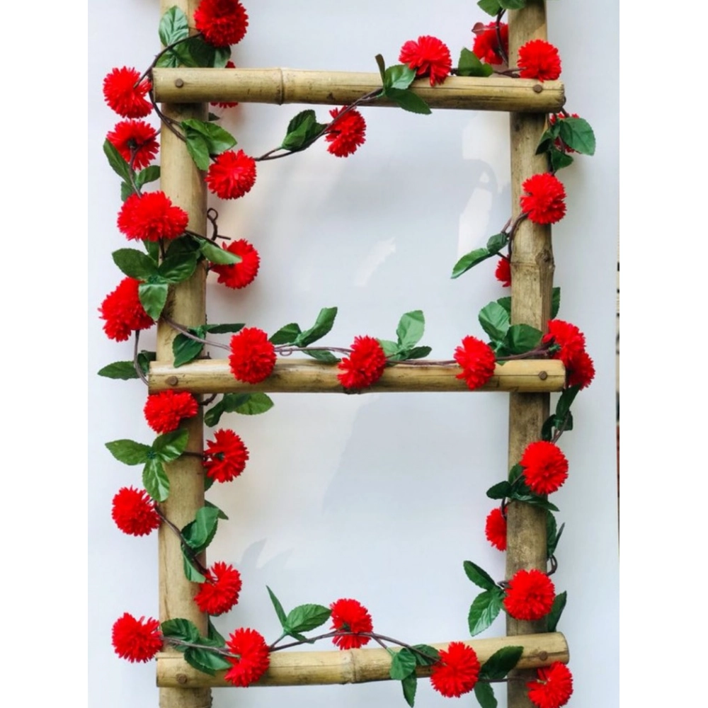 Generic Artificial Red Chrysanthemum Dahlia Flower Vine Creeper With Big Green Leaves For Home Decoraton (Color: Red, Material: Silk Polyester)