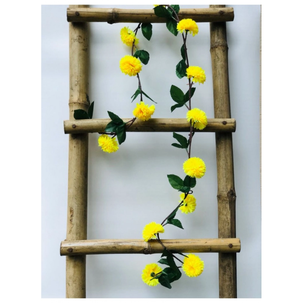 Generic Artificial Yellow Chrysanthemum Dahlia Flower Vine Creeper With Big Green Leaves For Home Decoraton (Color: Yellow, Material: Silk Polyester)