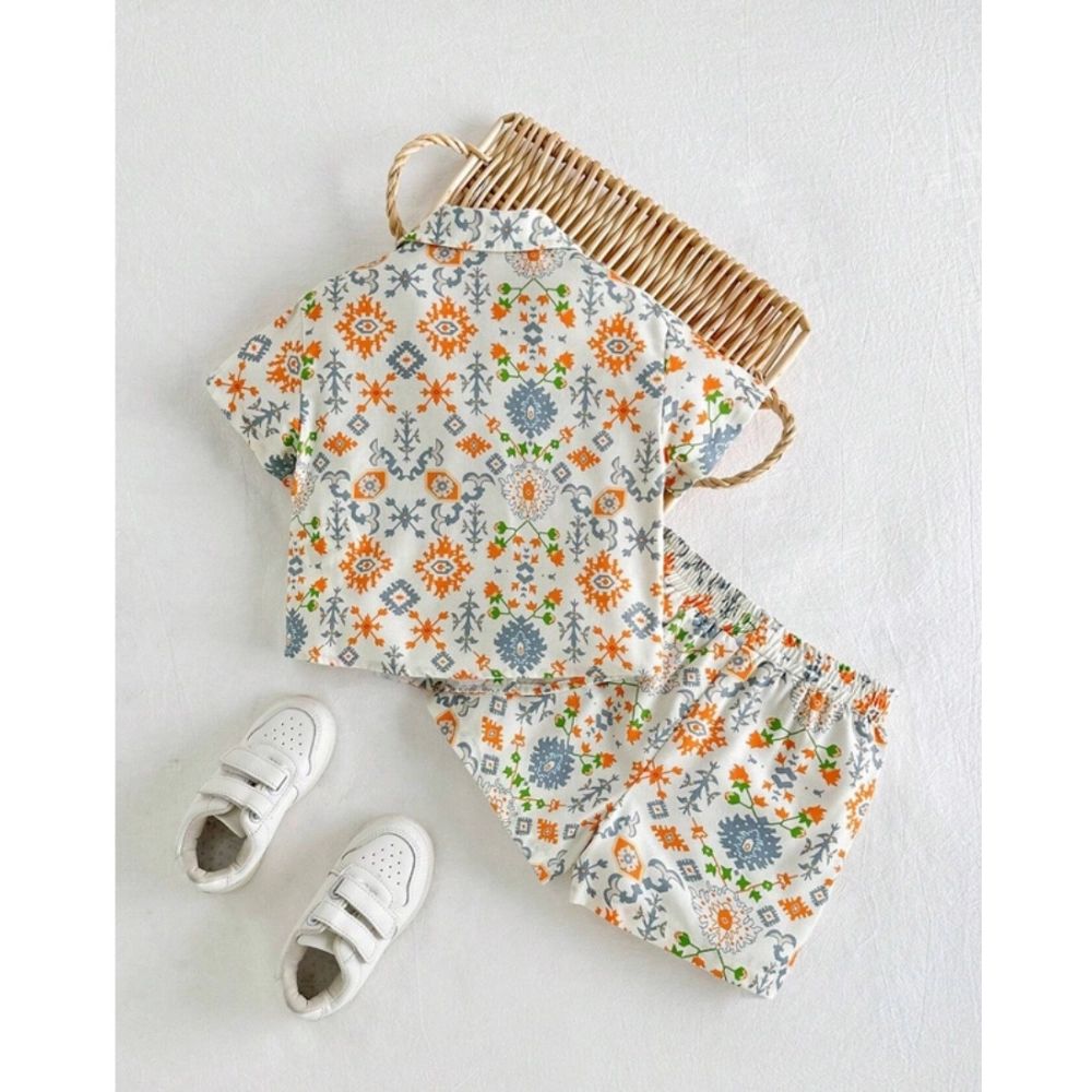 Generic Boy’s Twill Cotton Printed Short Sleeve Shirt And Shorts Set (Multicolor)