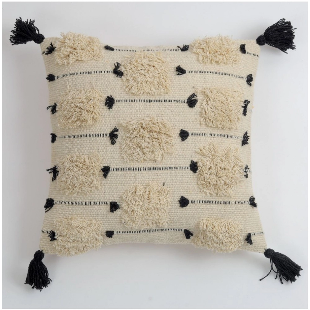 Generic Cotton Handcrafted Pit Loom Cushion Cover 16×16 Inch Pack of 2 (Black)
