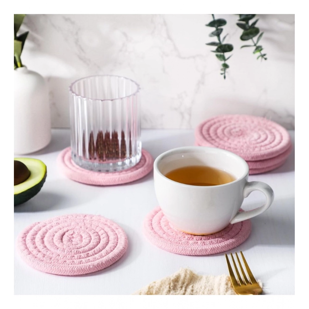 Generic Cotton Rope Drink Coasters 6 Pcs Set (Baby Pink)
