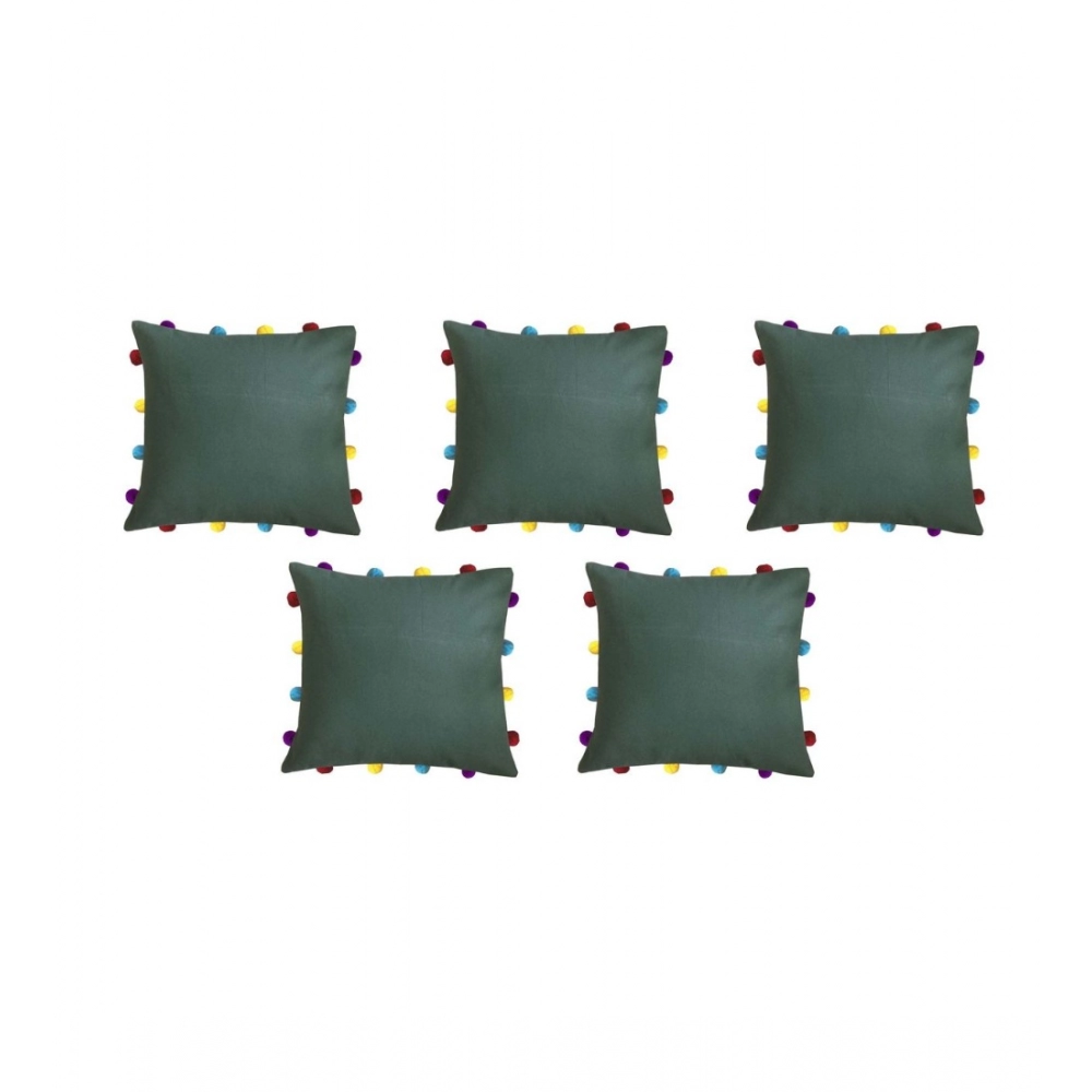 Generic Cotton Solid Pom Pom Cushion Covers (Green, Size: 14×14 In)
