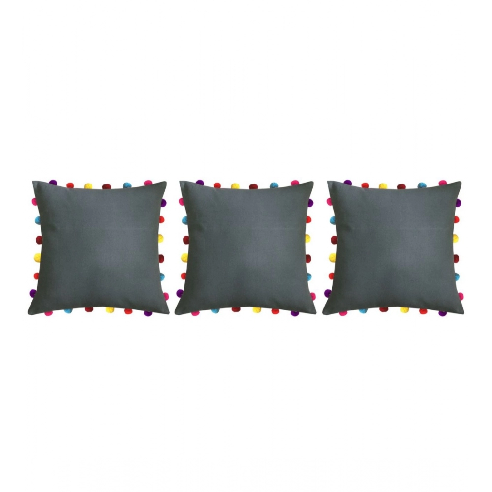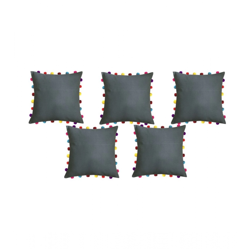 Generic Cotton Solid Pom Pom Cushion Covers (Grey, Size: 18×18 In)