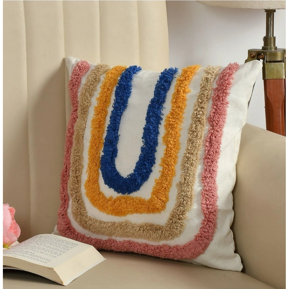 Generic Cotton Tufted Cushion Pillow Cover 16×16 Inch Pack of 2 (Ranibow)