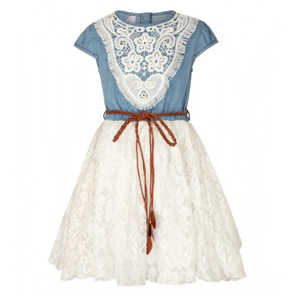 Girl’s Denim Embroidery Short Sleeve Round Neck Dress