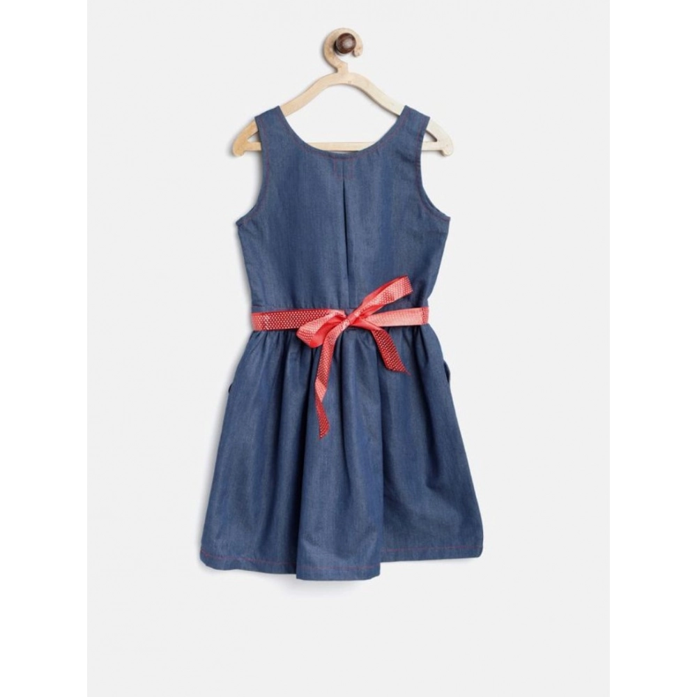 Generic Girl’s Denim Solid Sleeveless Round Neck Dress (Blue)