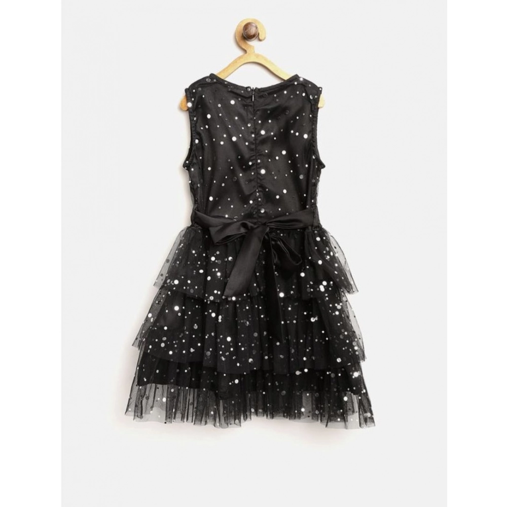 Generic Girl’s Net Embellished Sleeveless V-Neck Dress (Black)