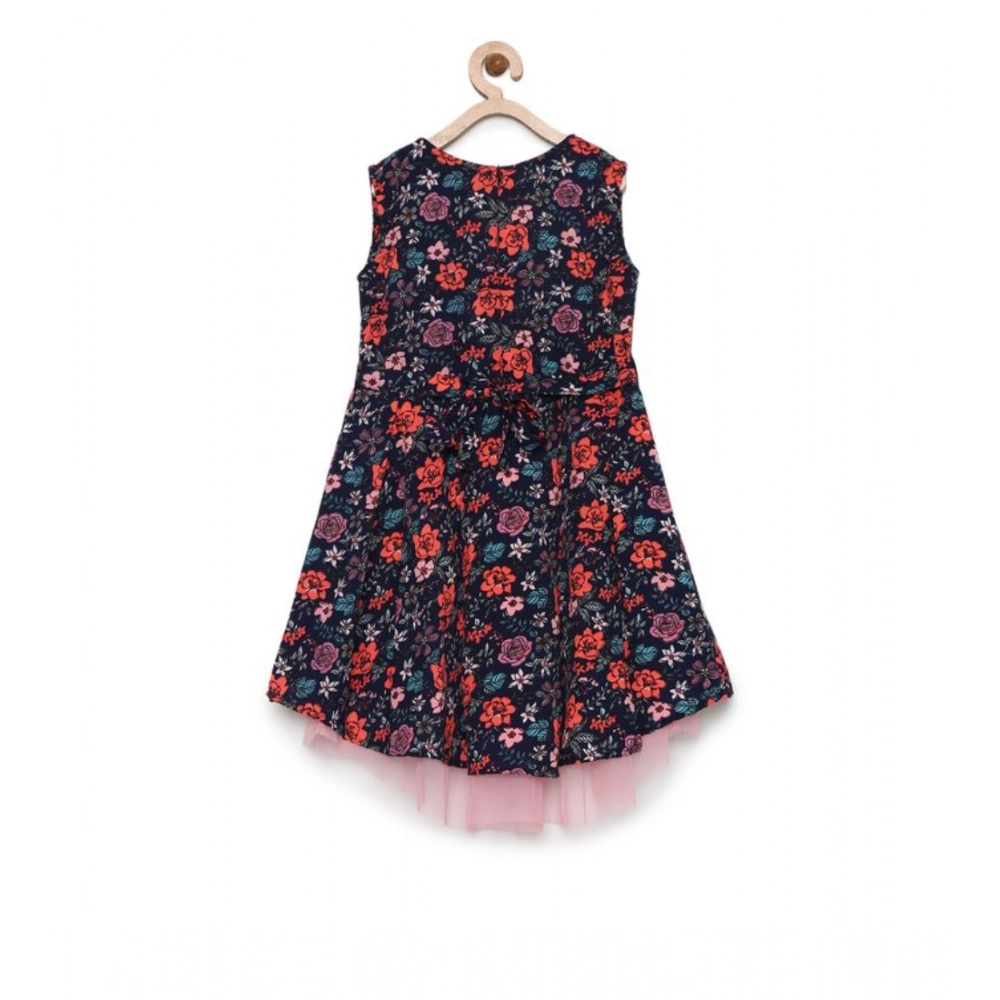Generic Girl’s Polyester Crepe Embellished Sleeveless Round Neck Dress (Multicolor)