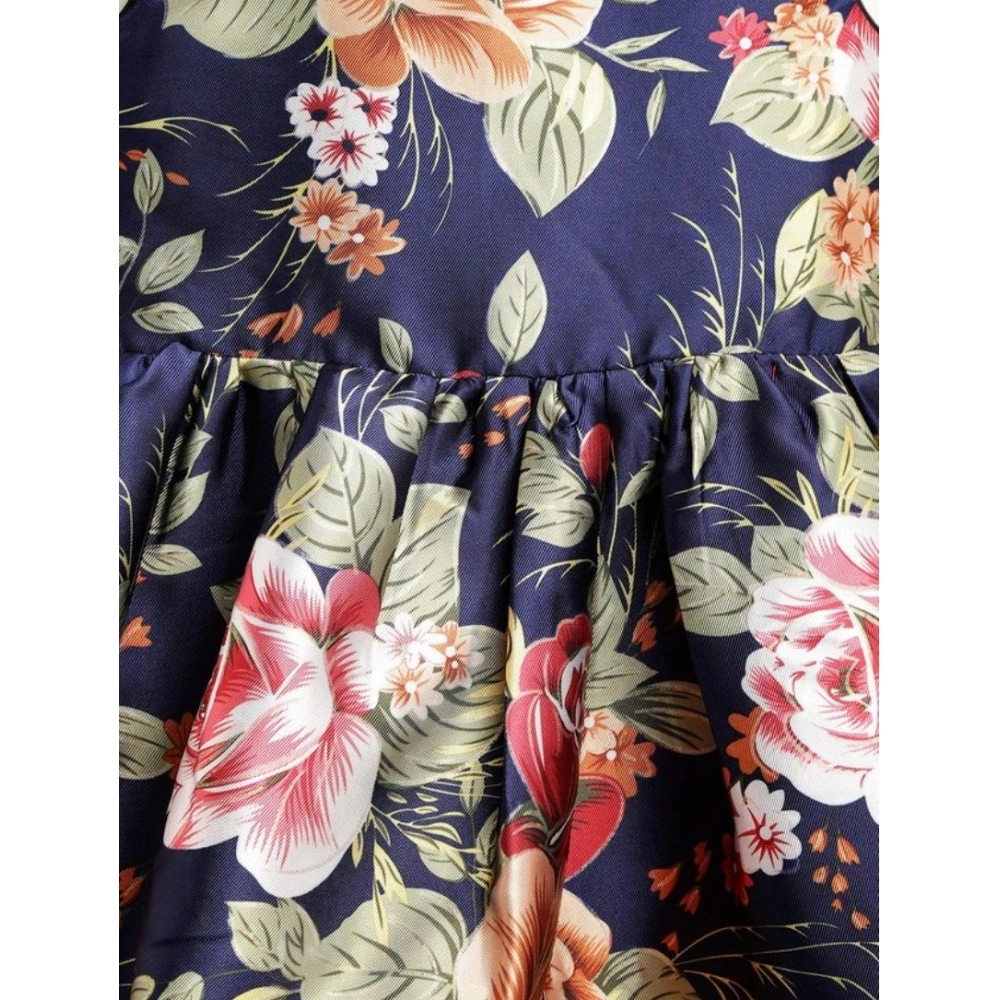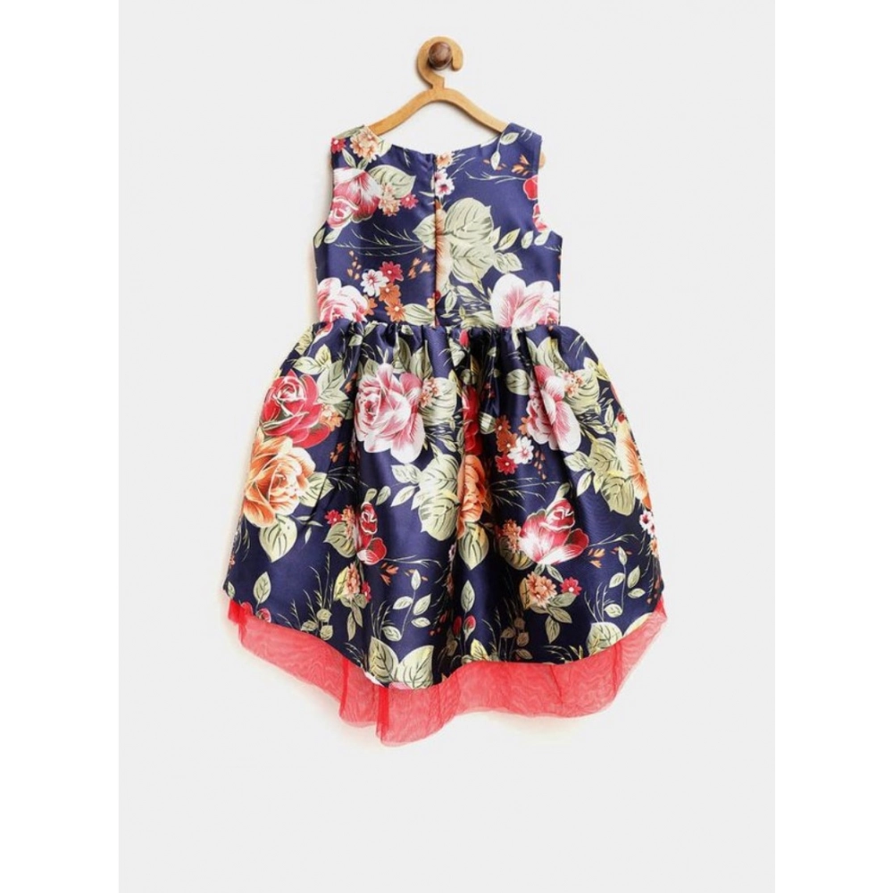 Generic Girl’s Polyester Net Net Inset Sleeveless Round Neck Dress (Navy Blue)