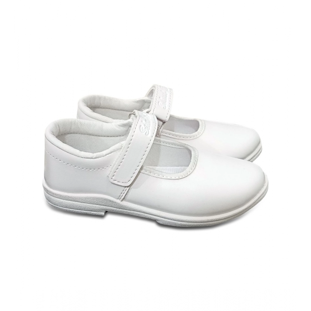 Generic Girls Rexine Ox-Ankle Velcro Closure School Shoe (White)
