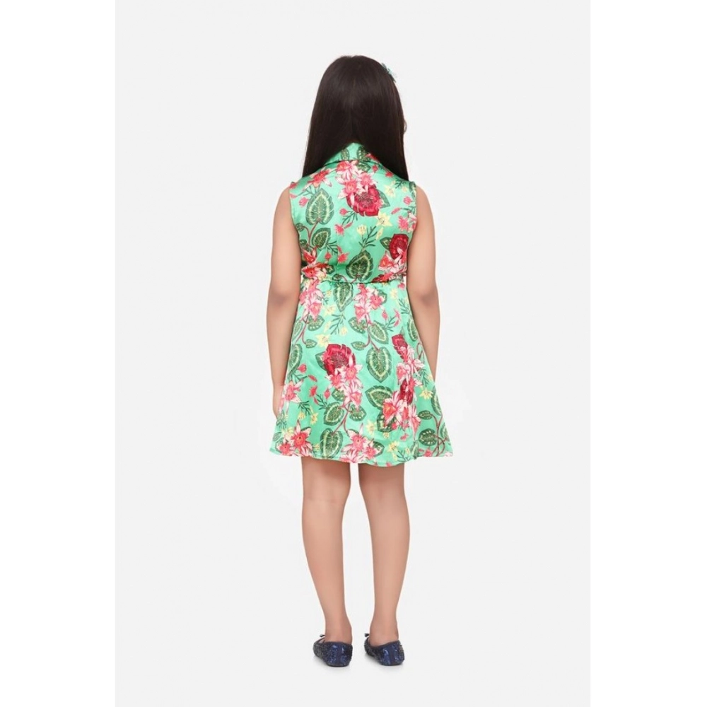 Generic Girl’s Satin Floral Printed Sleeveless Shirt Collar Dress (Multicolor)