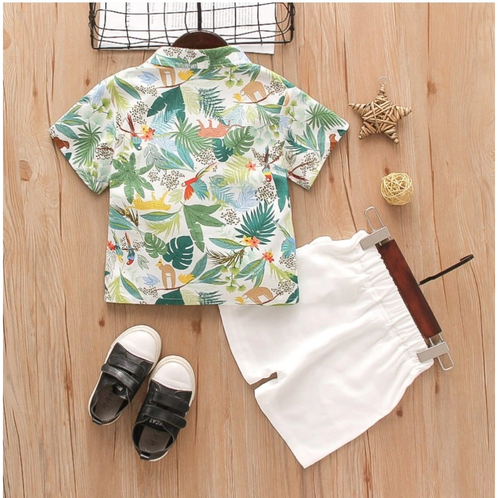Generic Kid’s Lycra Printed Casual wear Shirt And Shorts Set (Green)