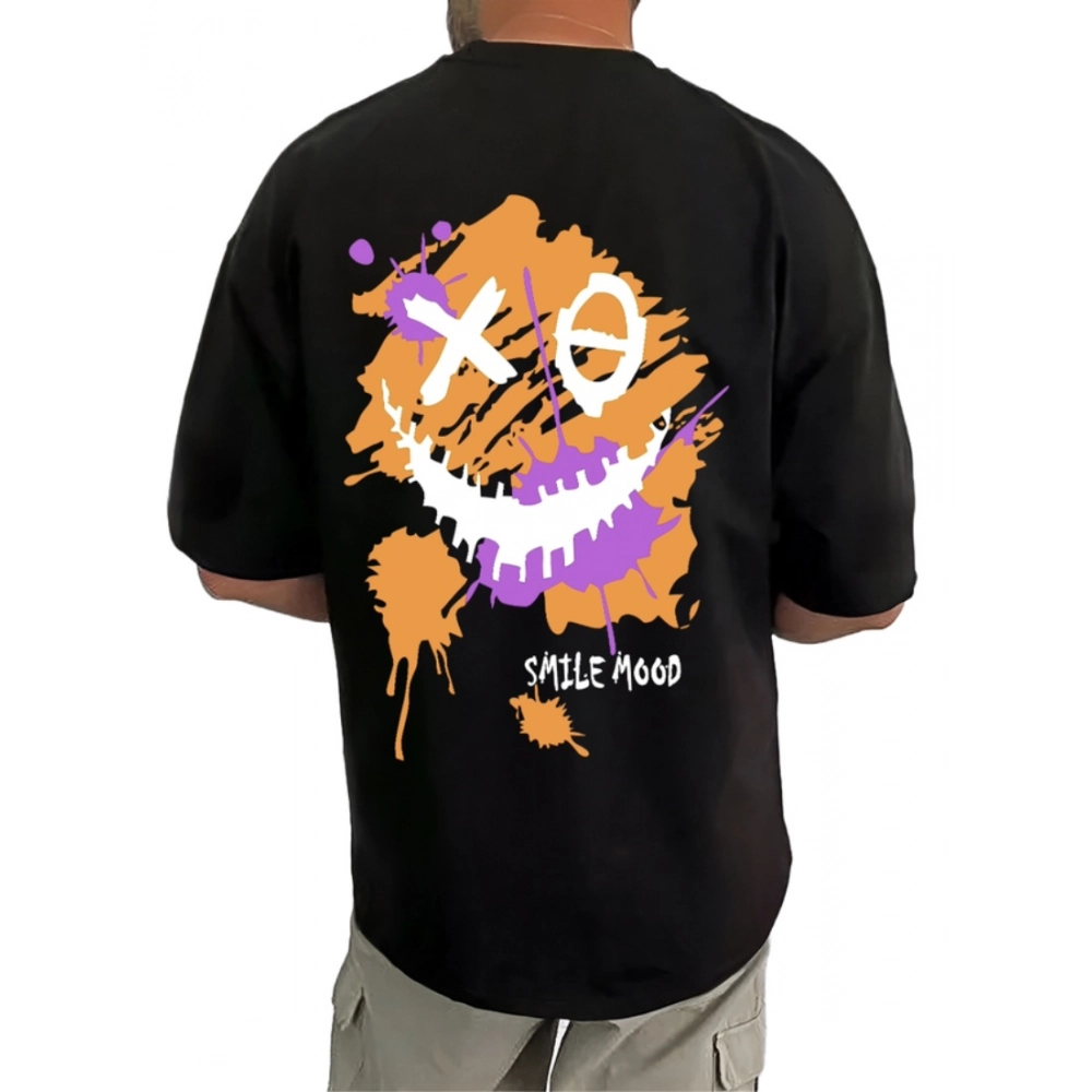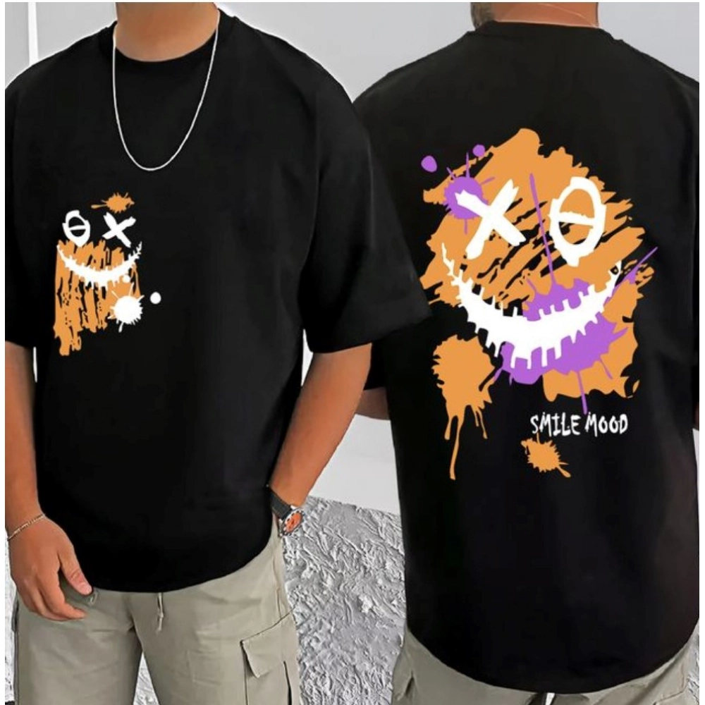 Generic Men’s Casual Cotton Blend Printed Round Neck Half Sleeve T-Shirt (Black)