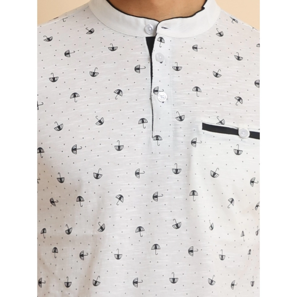 Men’s Casual Cotton Printed Mandarin Collar Half Sleeve T-Shirt