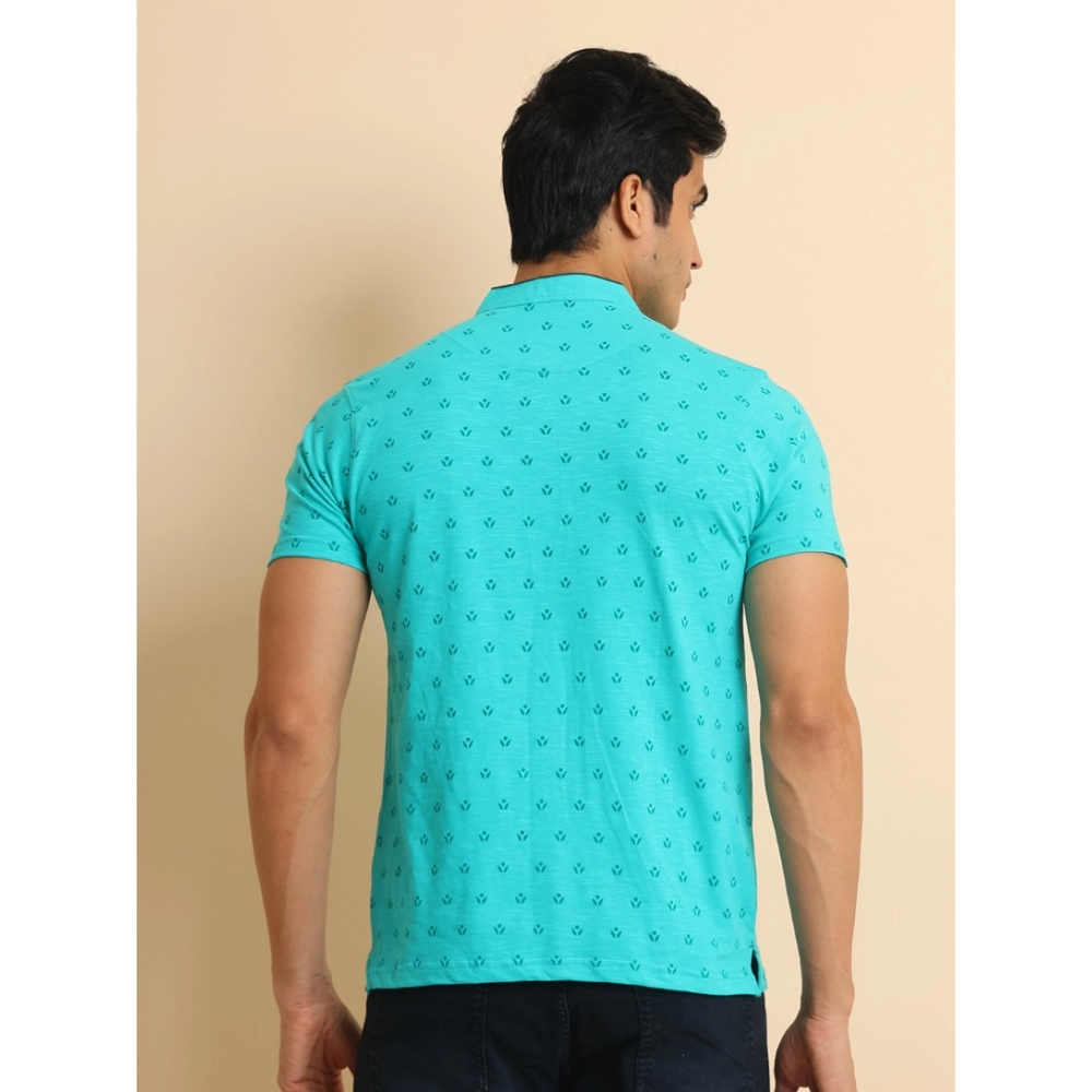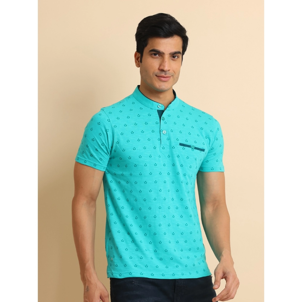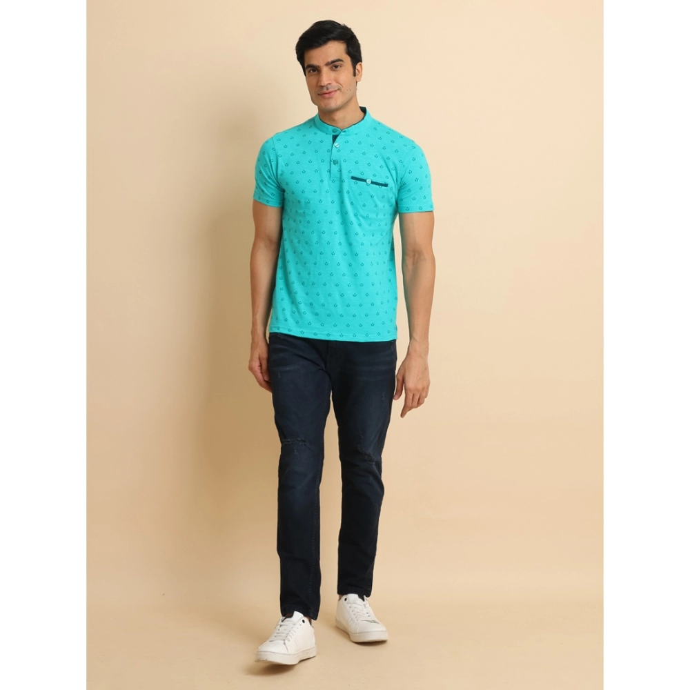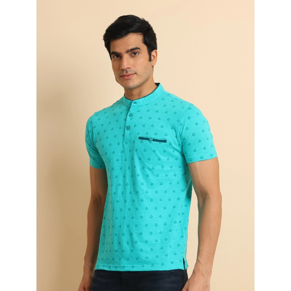 Generic Men’s Casual Cotton Printed Mandarin Collar Half Sleeve T-Shirt (Seagreen)