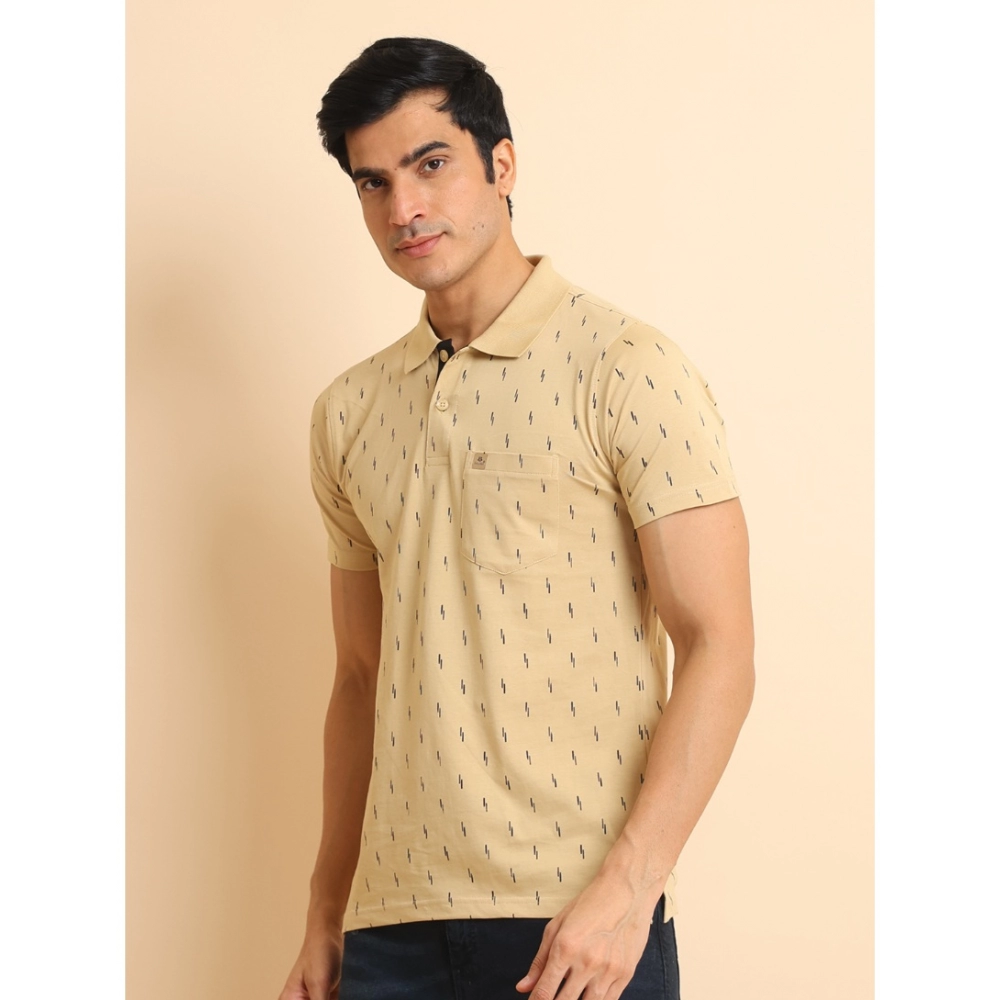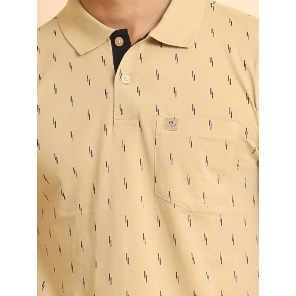 Generic Men’s Casual Cotton Printed Polo Neck Half Sleeve T-Shirt (Beige)