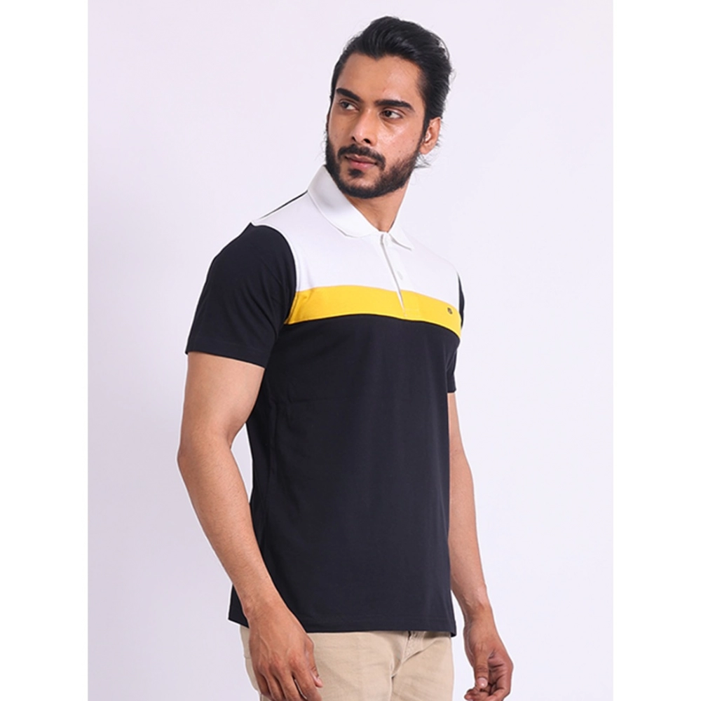 Generic Men’s Casual Cotton Printed Polo Neck Half Sleeve T-Shirt (Black)