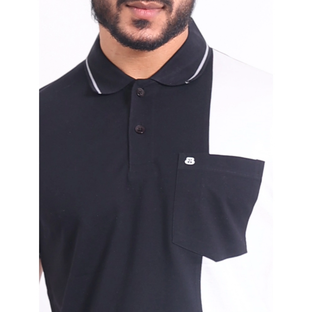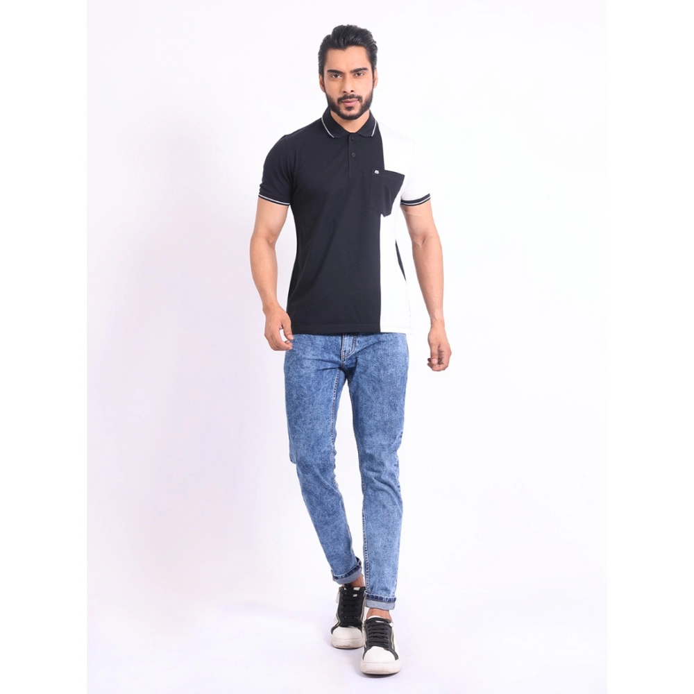 Generic Men’s Casual Cotton Printed Polo Neck Half Sleeve T-Shirt (Black)