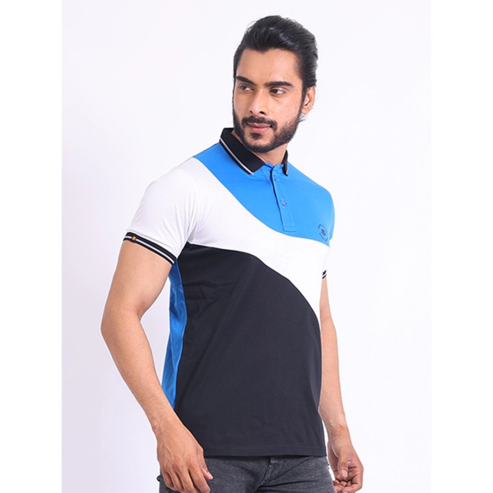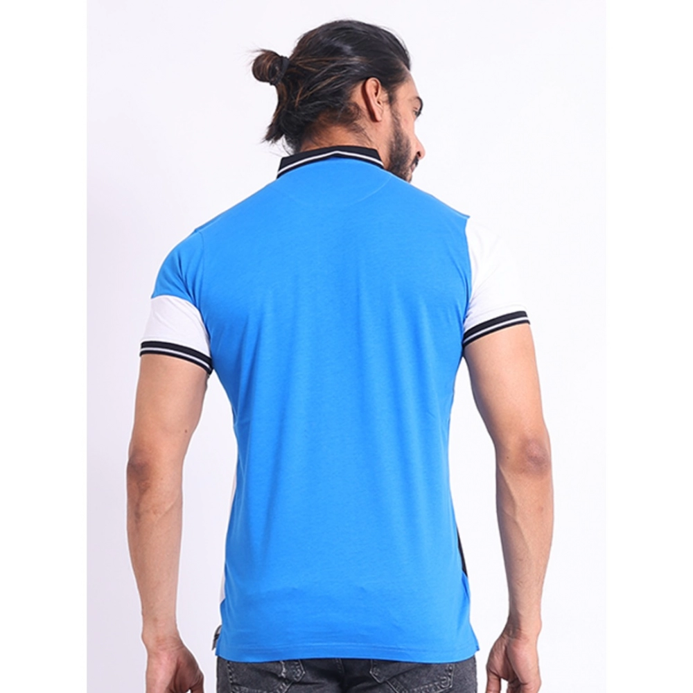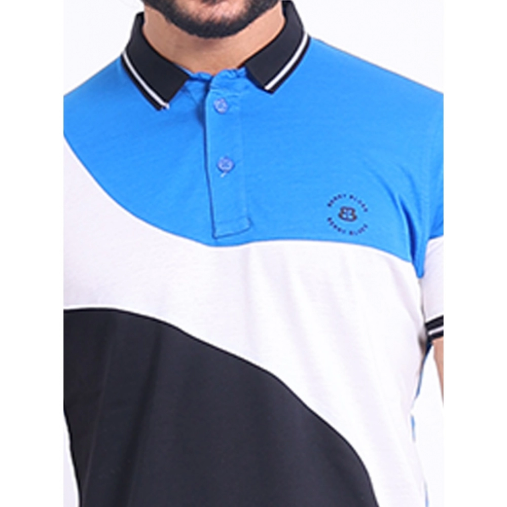 Generic Men’s Casual Cotton Printed Polo Neck Half Sleeve T-Shirt (Blue)