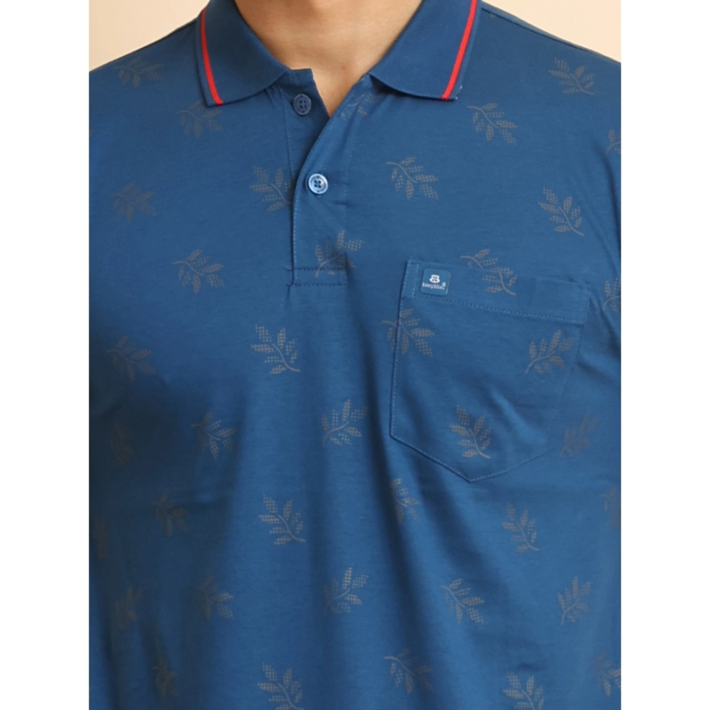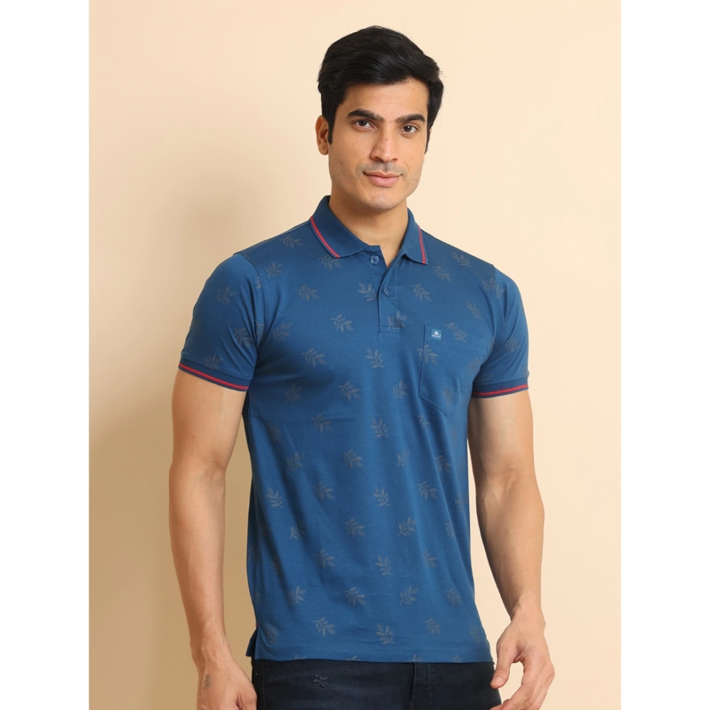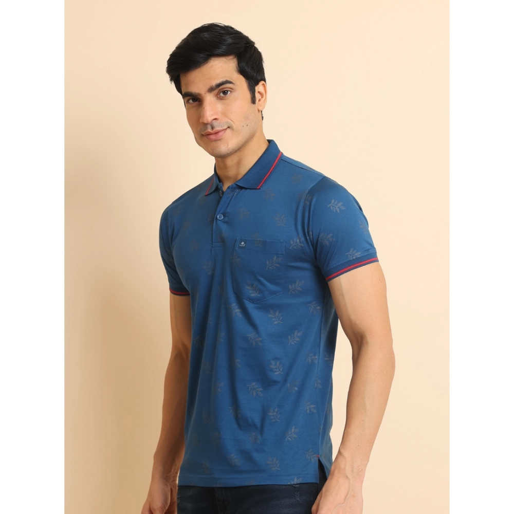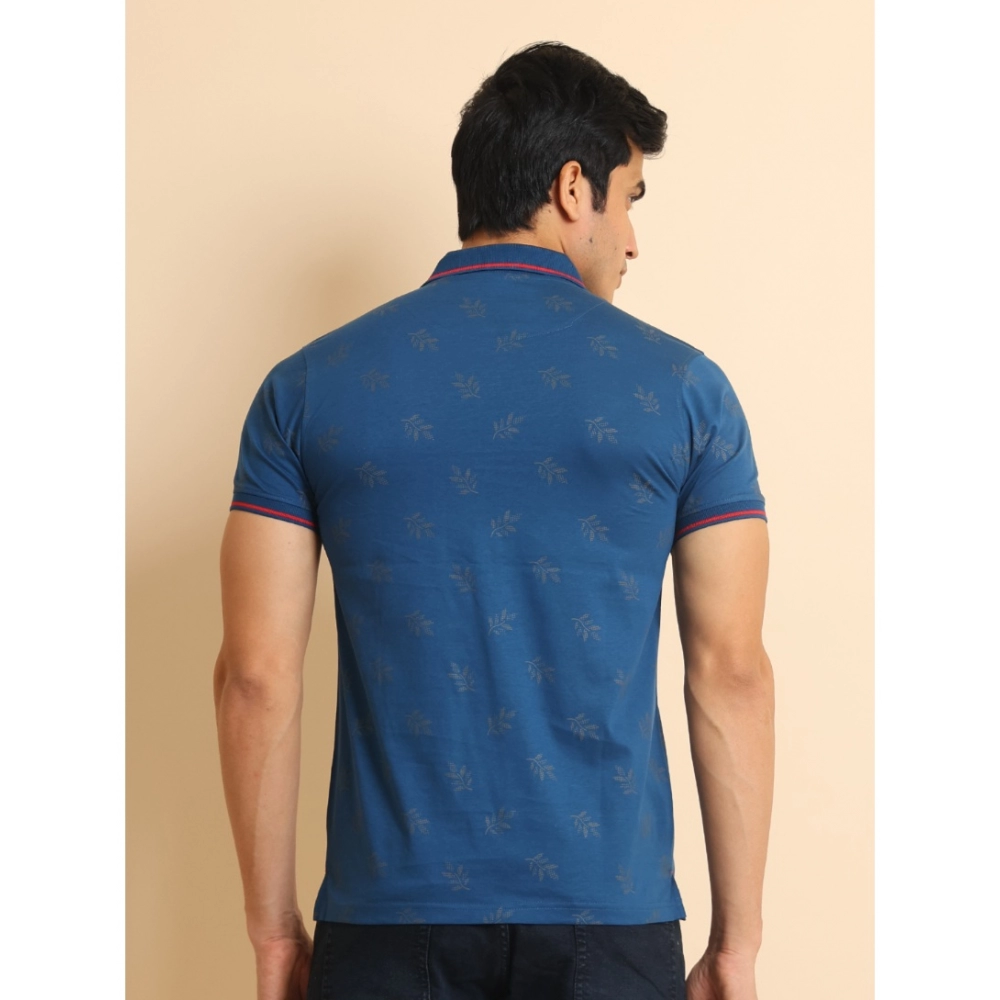 Generic Men’s Casual Cotton Printed Polo Neck Half Sleeve T-Shirt (Blue)