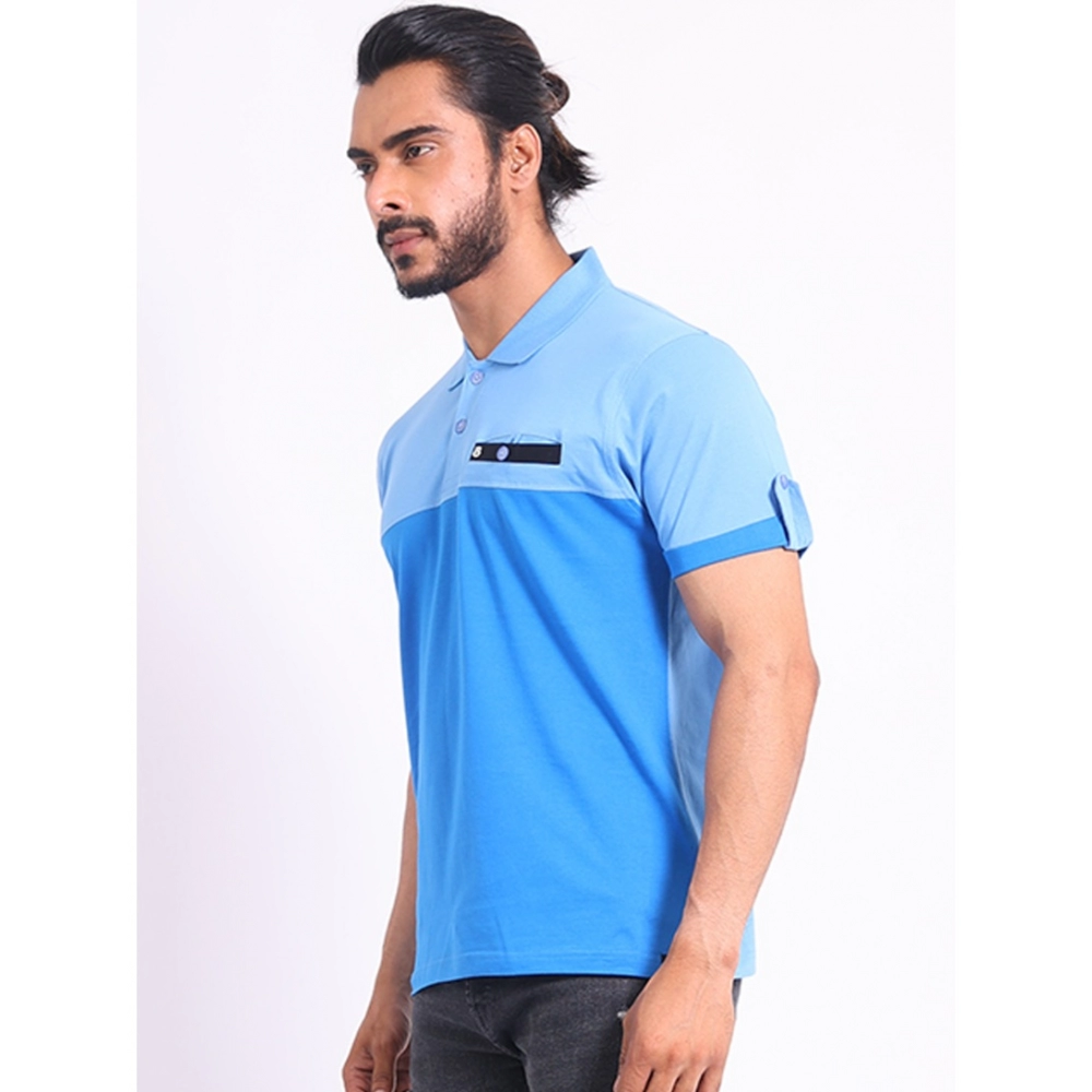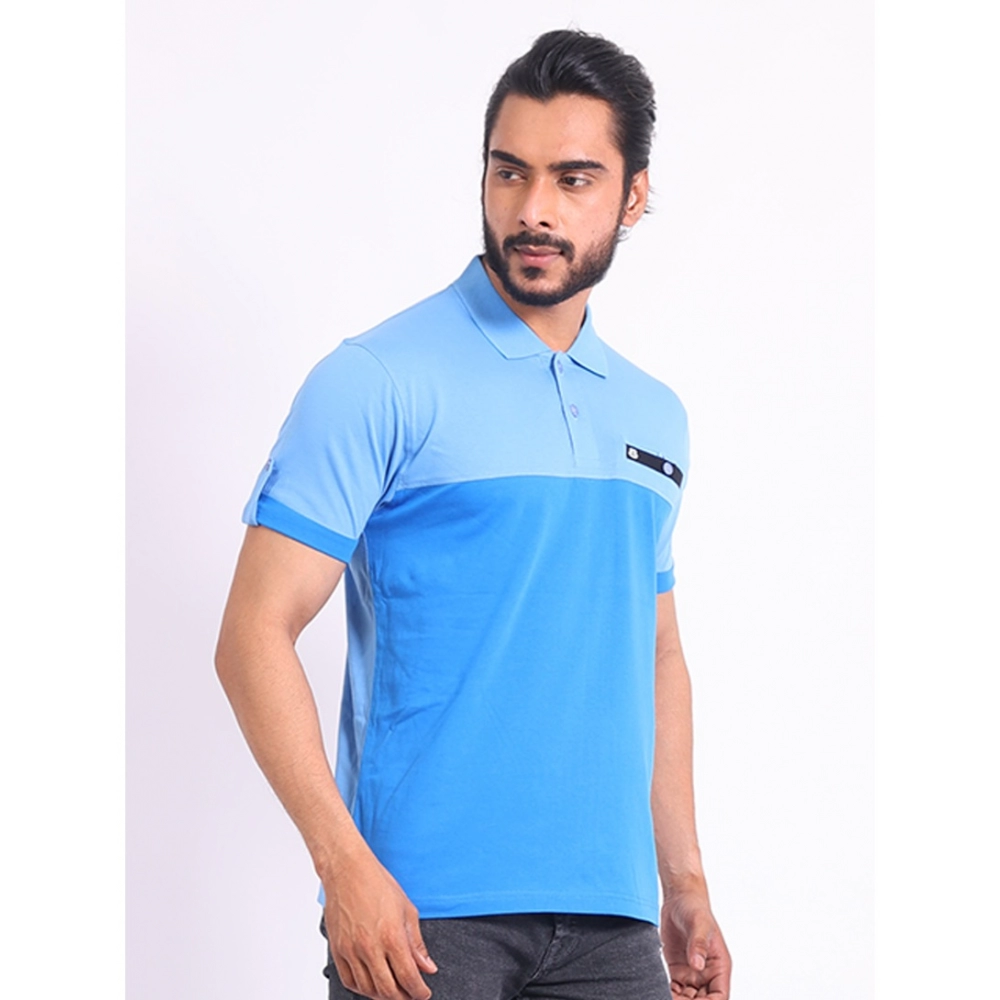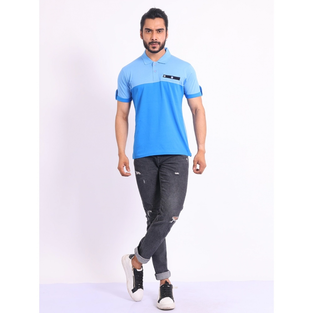 Generic Men’s Casual Cotton Printed Polo Neck Half Sleeve T-Shirt (Blue)