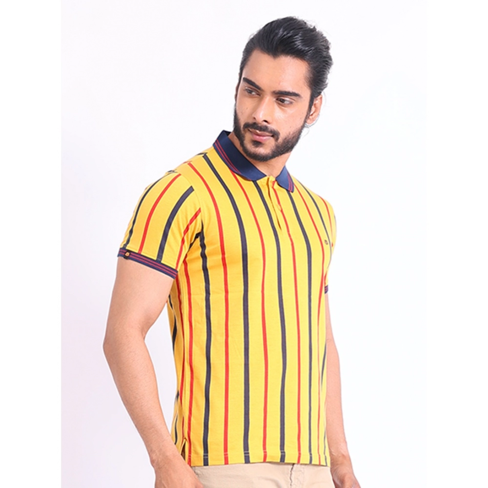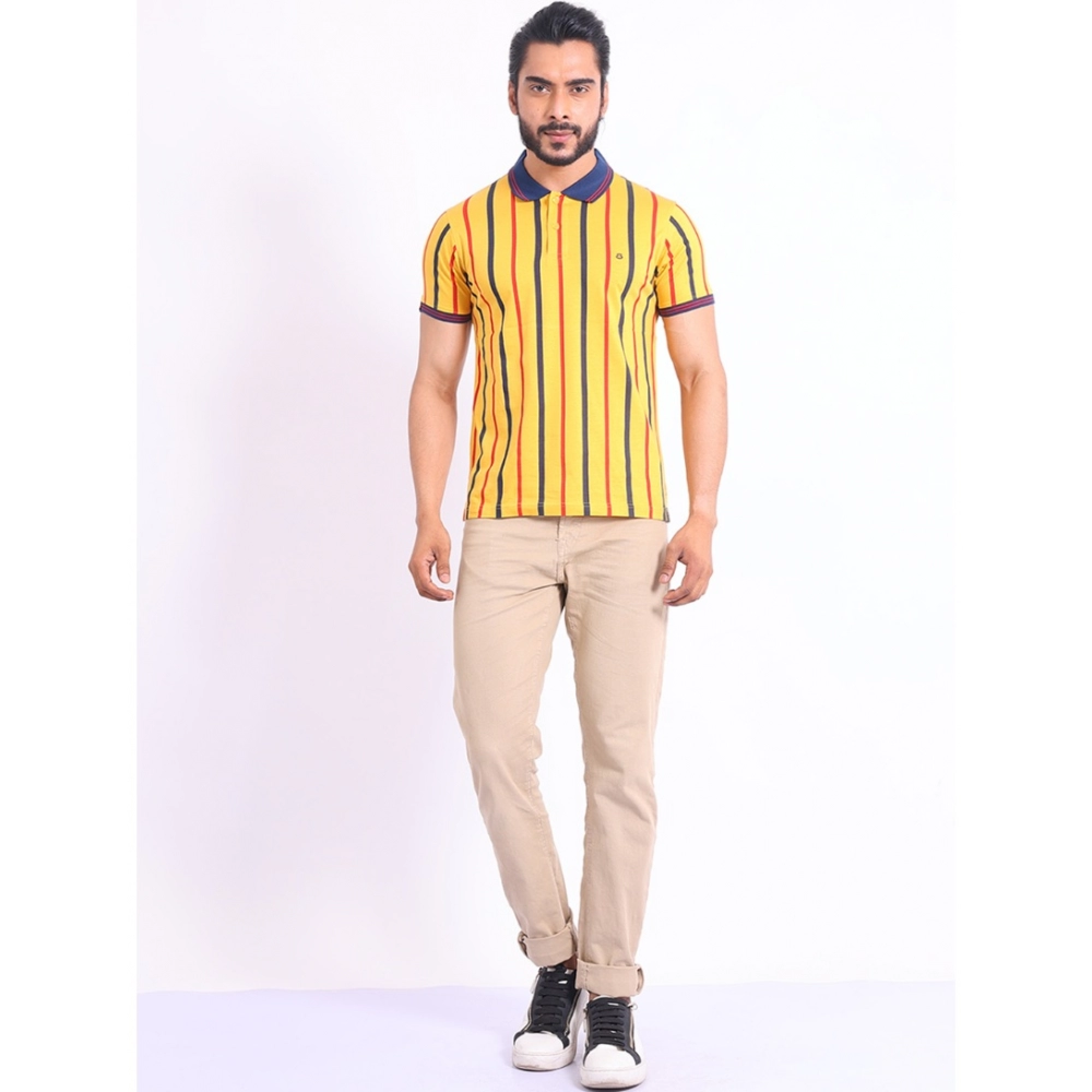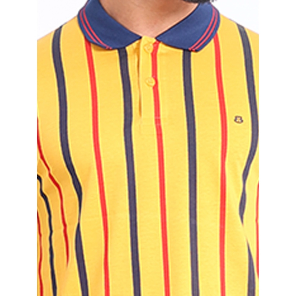 Generic Men’s Casual Cotton Printed Polo Neck Half Sleeve T-Shirt (Mustard)