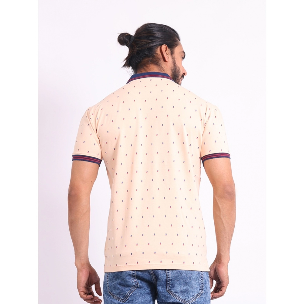Generic Men’s Casual Cotton Printed Polo Neck Half Sleeve T-Shirt (Peach)
