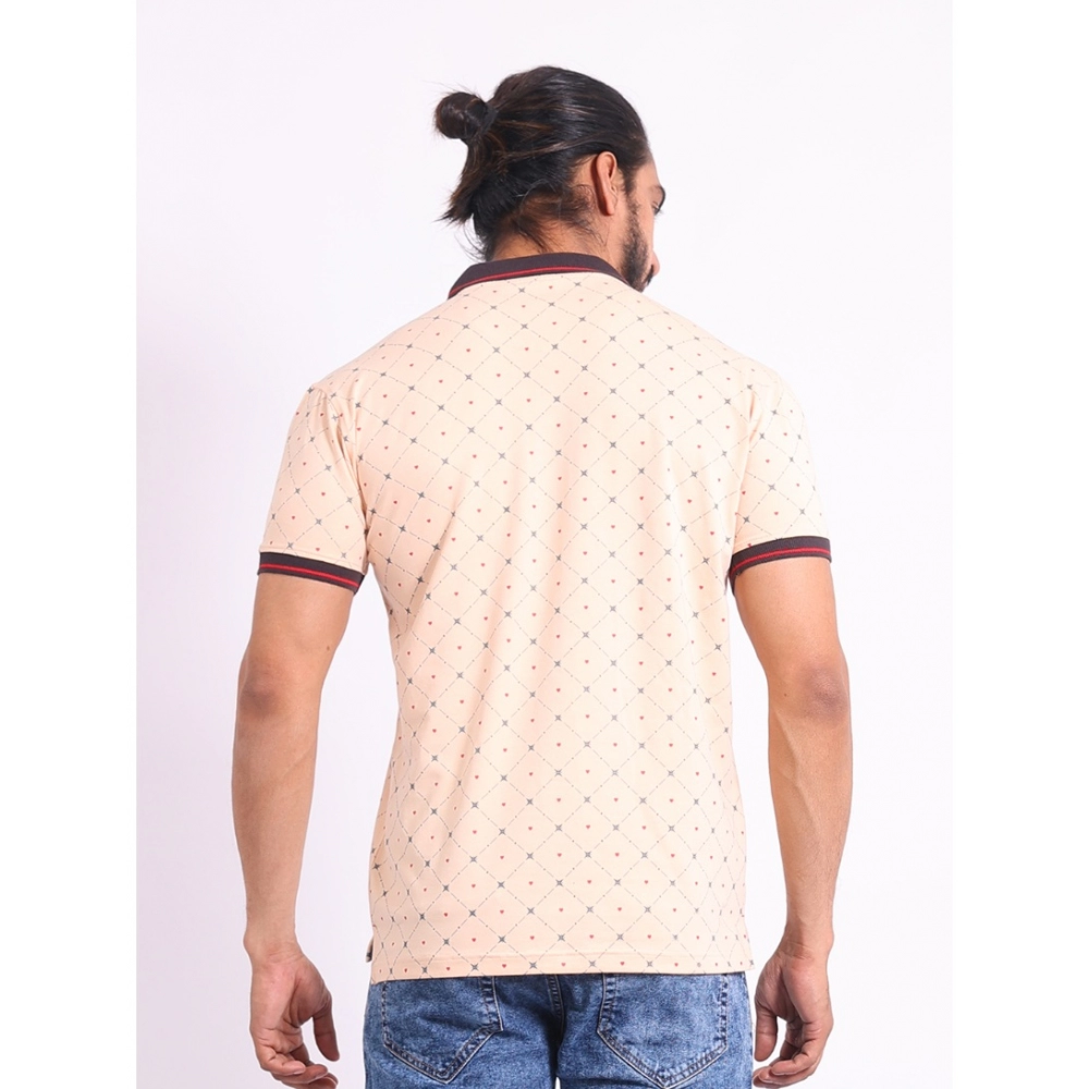 Generic Men’s Casual Cotton Printed Polo Neck Half Sleeve T-Shirt (Peach)