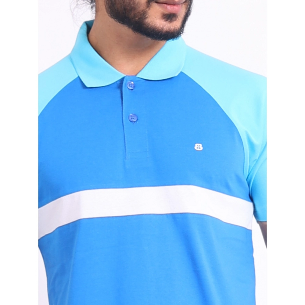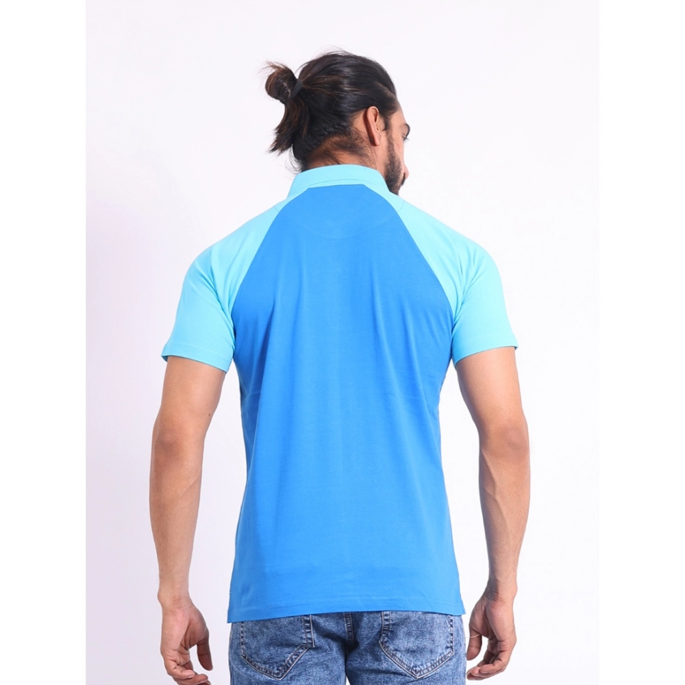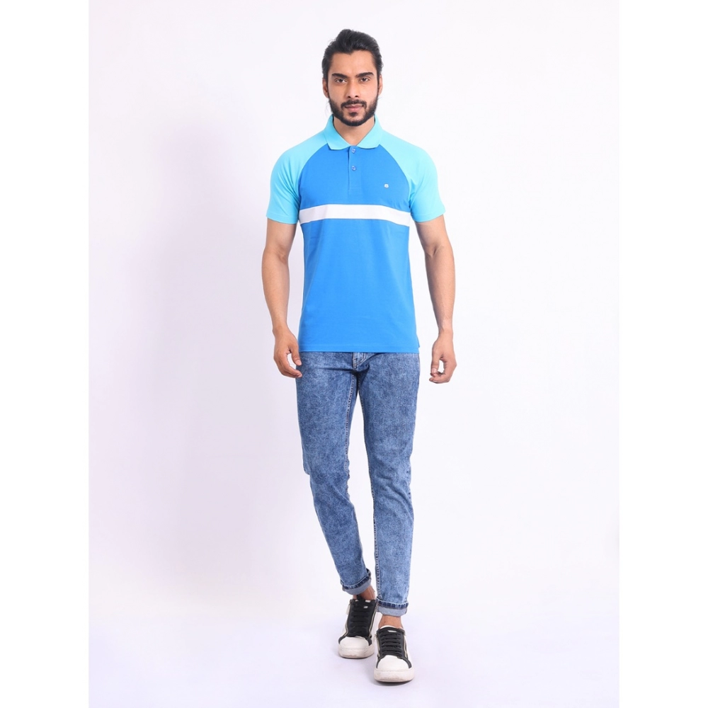 Generic Men’s Casual Cotton Printed Polo Neck Half Sleeve T-Shirt (Skyblue)