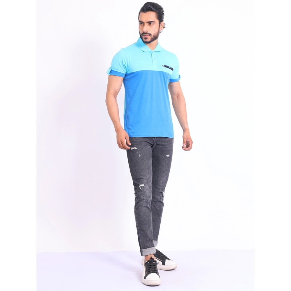 Generic Men’s Casual Cotton Printed Polo Neck Half Sleeve T-Shirt (Skyblue)