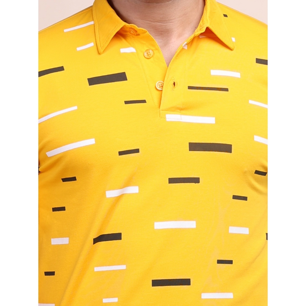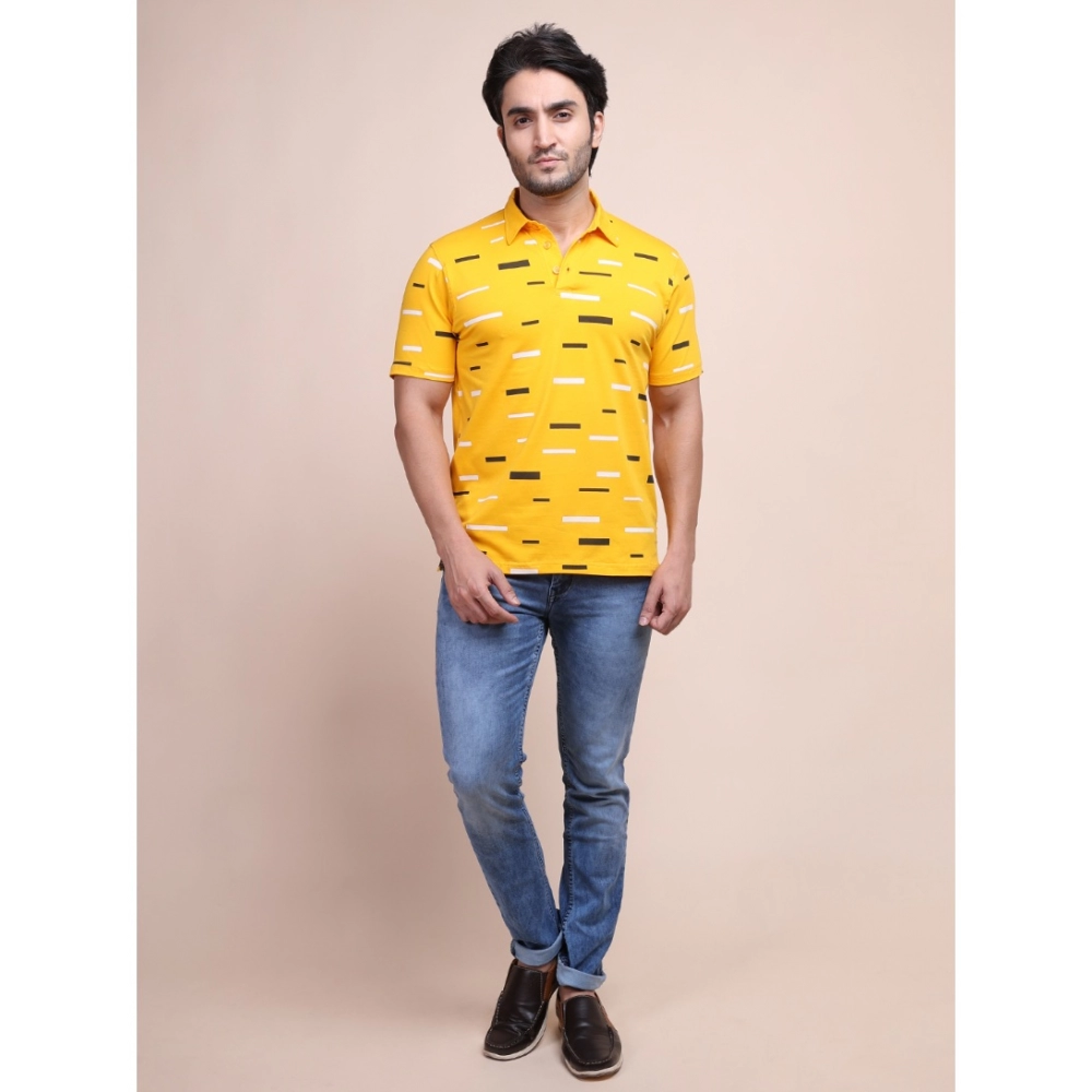 Generic Men’s Casual Cotton Printed Polo Neck Half Sleeve T-Shirt (Turmeric)