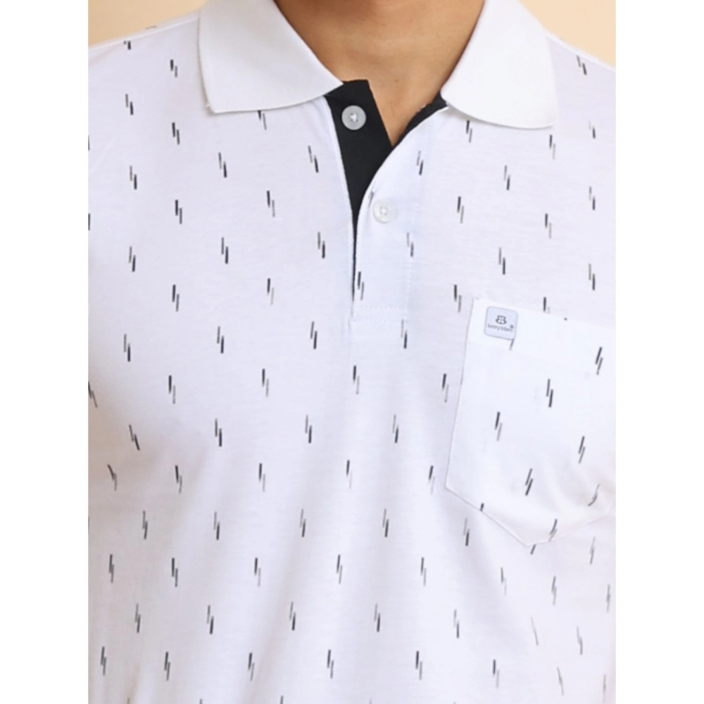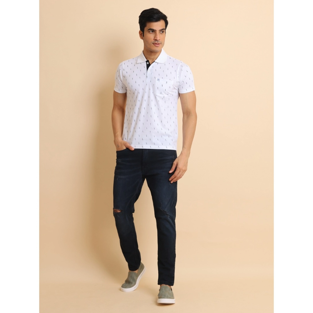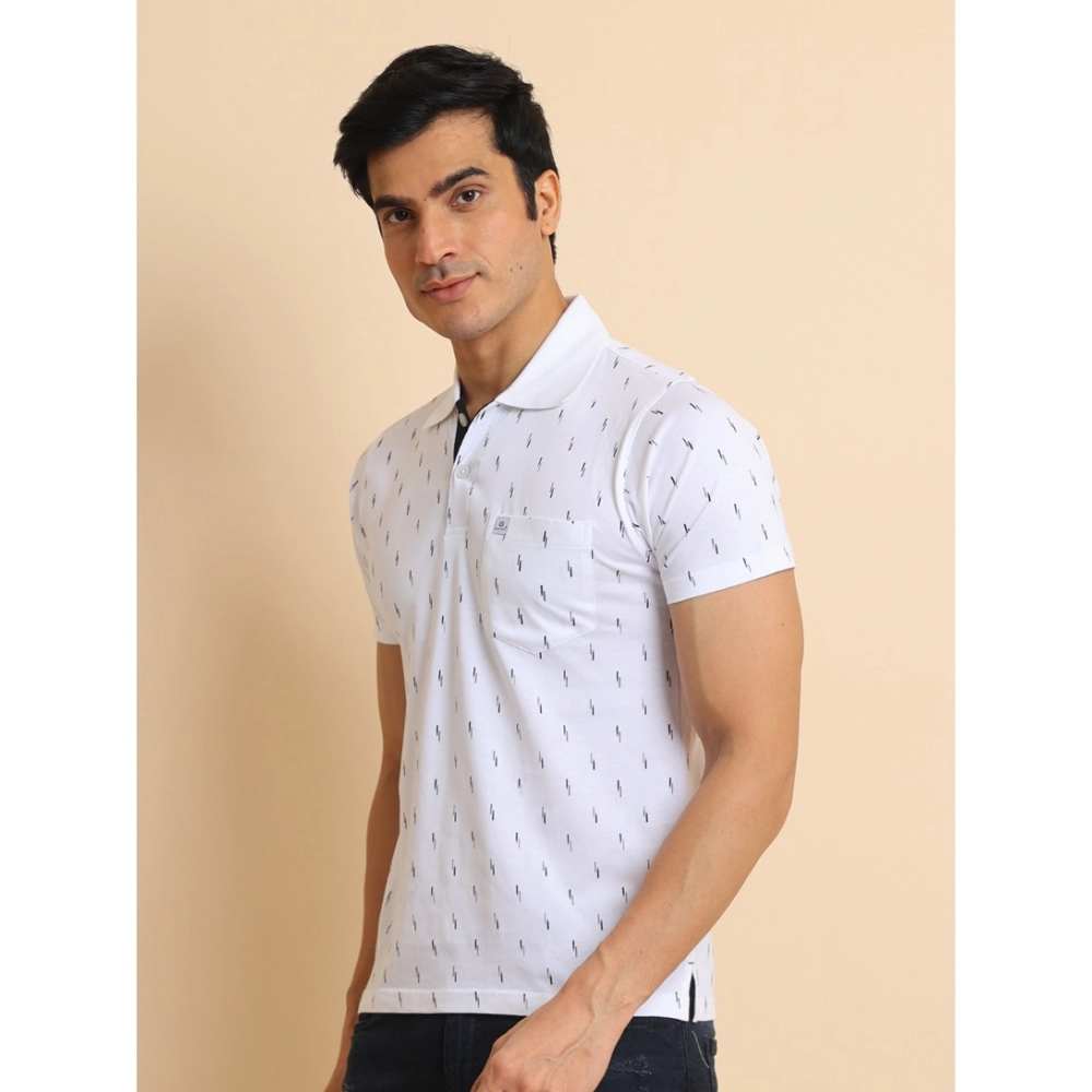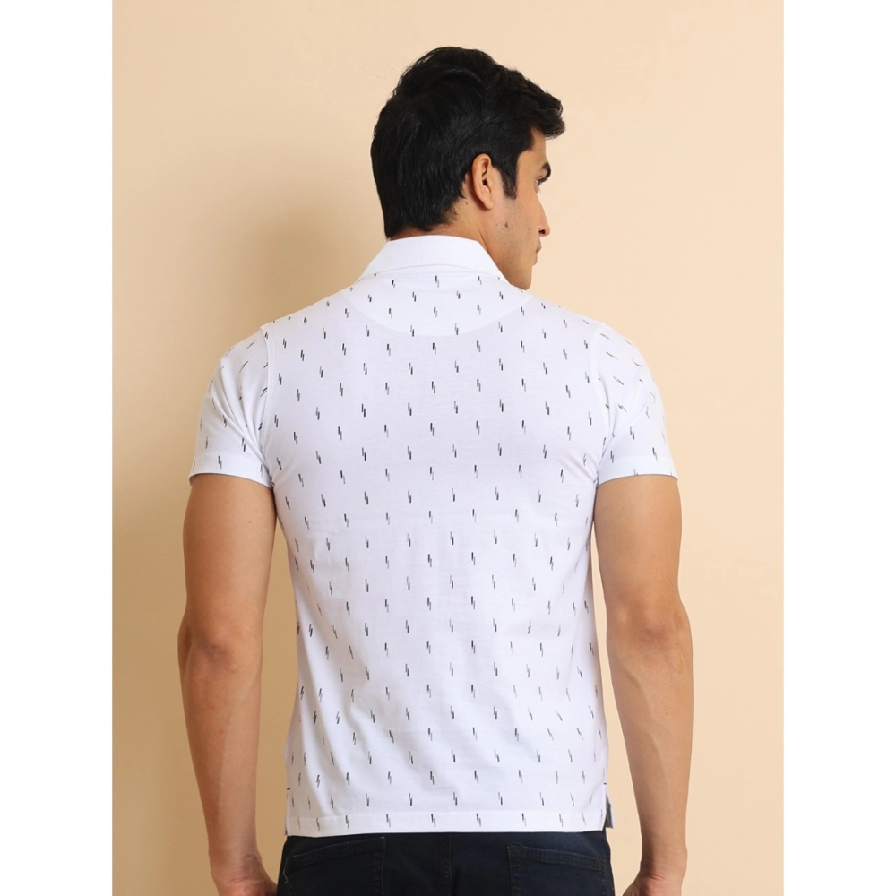 Generic Men’s Casual Cotton Printed Polo Neck Half Sleeve T-Shirt (White)